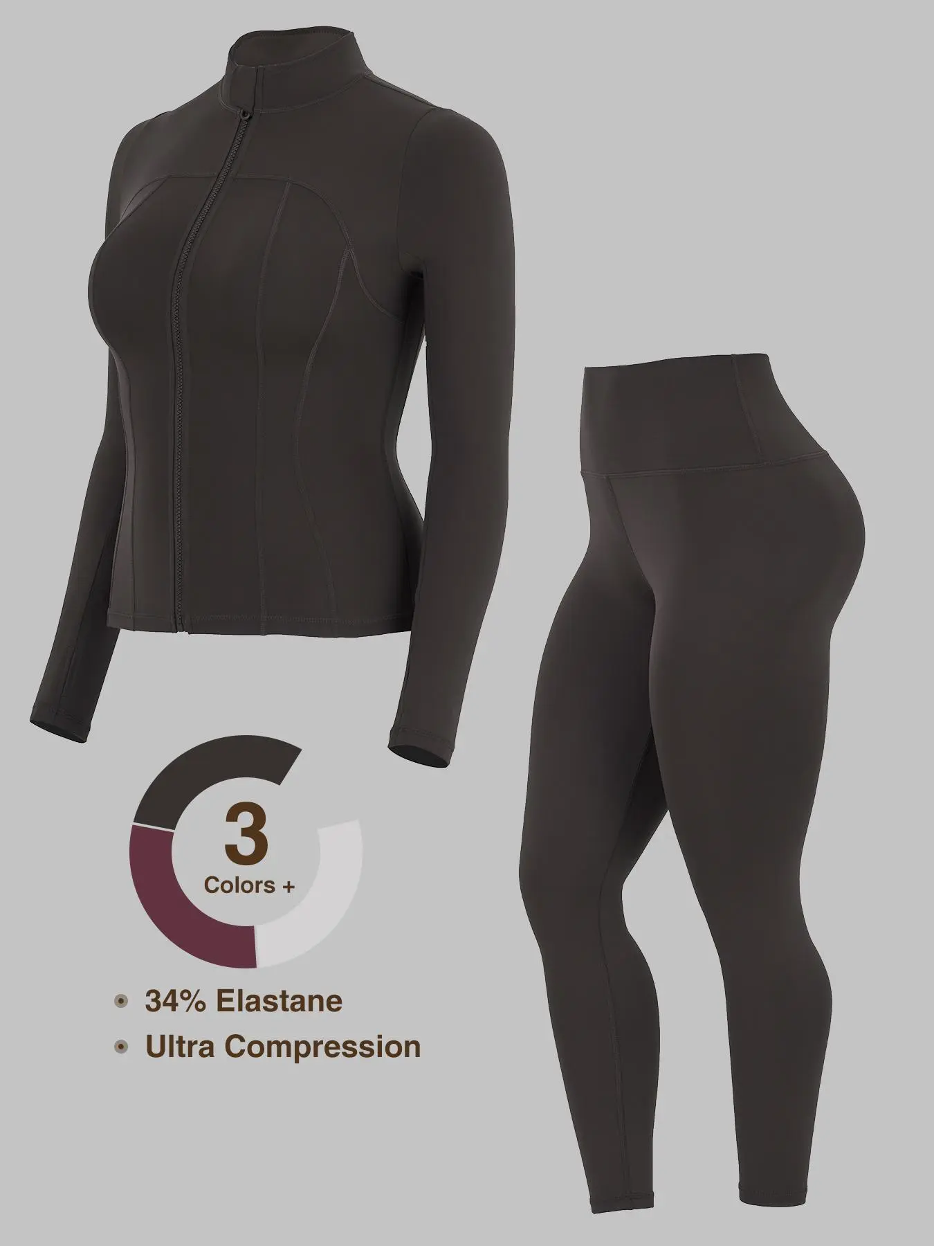 Love the set! The reddish purple color was too cute. I ordered a size medium.I'm 54 and weigh 155lbs. Fit true to the size. Good compression on the pants and the jacket. Great buy!