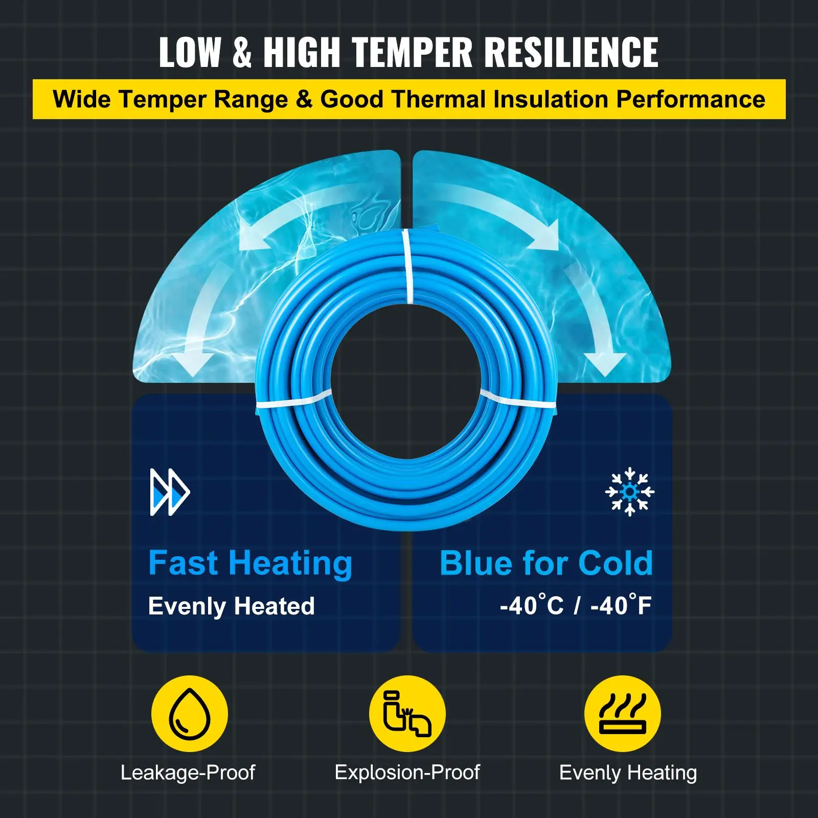 • 【SUPERB SEALING DESIGN】- Compatible water temperature: -40℃ to 95℃/-40℉ to 203℉. This non-broken 1" PEX tube can tackle different weather circumstances, no matter the high or low temperature, to ensure the integrity and secure use for longer life expectancy.