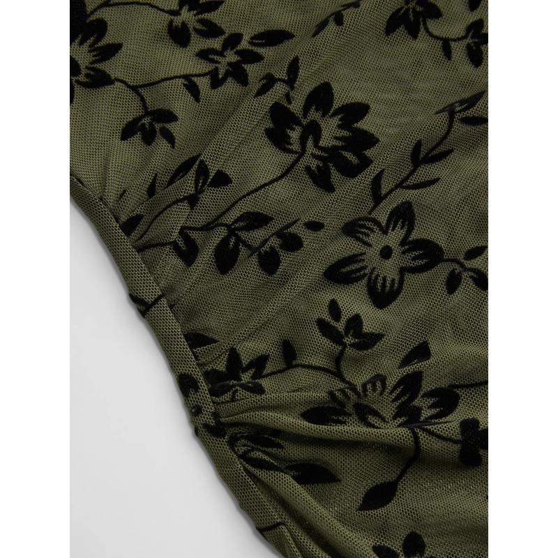 5. Cider [2 colors, size 0-26] Stand Collar Floral See-through Lettuce Trim Bodysuit