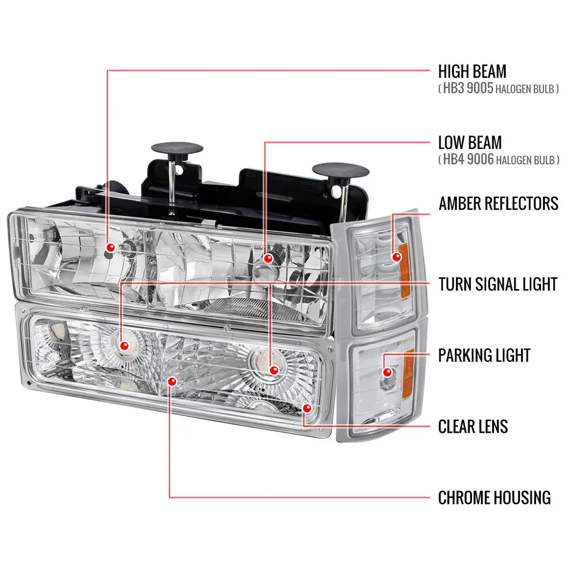 ยทComes with 1 pair of chrome housing clear lens headlights with chrome bumper lights and corner lights with amber reflectors