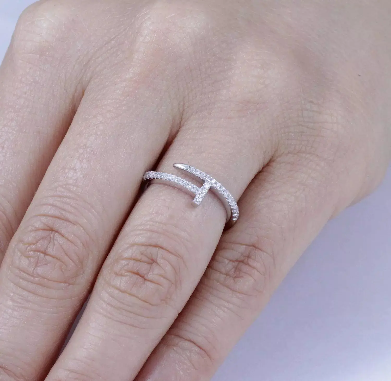 You are looking at gorgeous 925 sterling silver T wire Cz women's fashion ring. The ring features 31pcs 0.7mm brilliant round cut AAA grade CZ stones prong set in solid .925 sterling silver(stamped) and finished with rhodium plating for maximum shine and protection (platinum look). Total carat weight is approx. 0.5 carats diamond equivalent. Top quality AAA Cubic Zirconia shine like real diamonds!