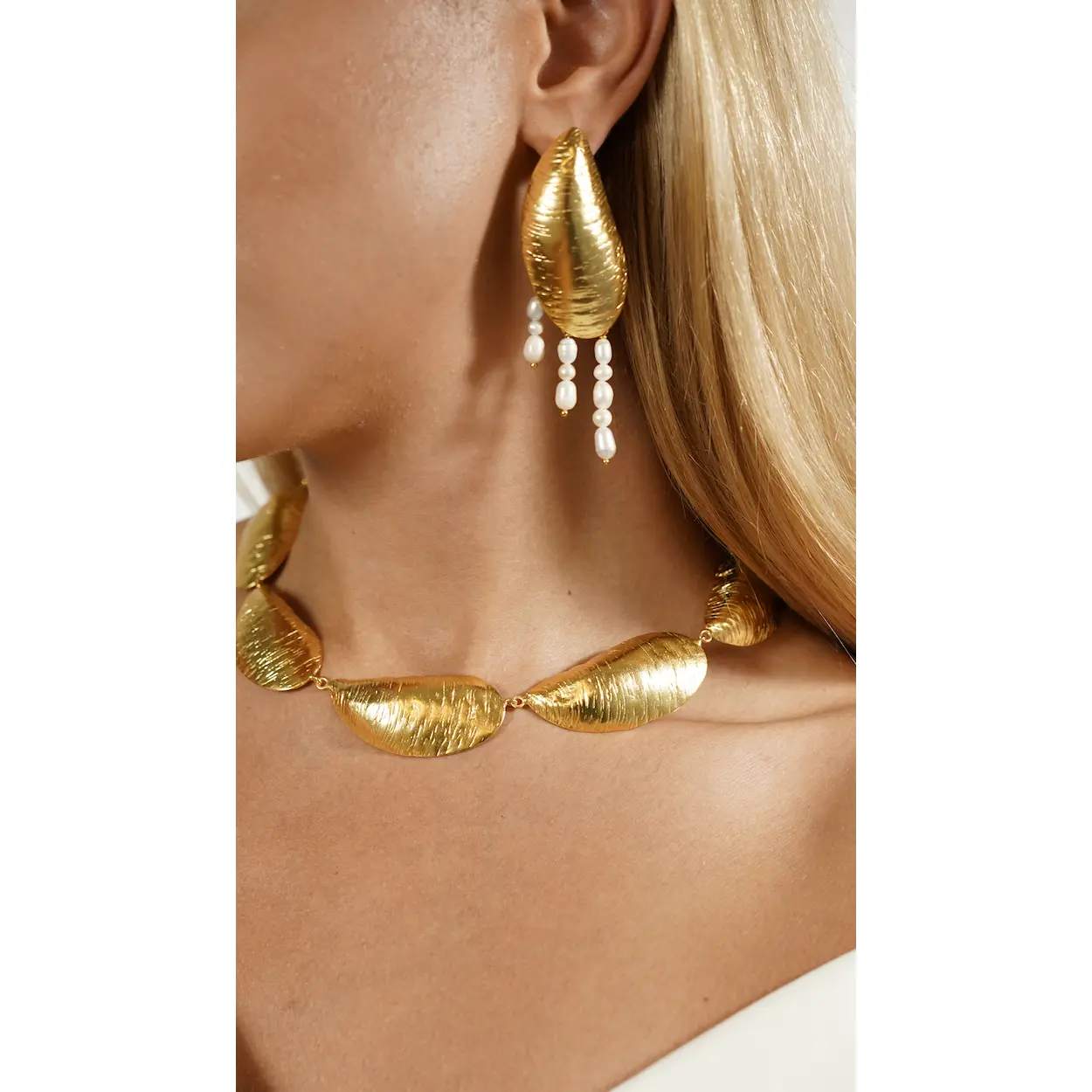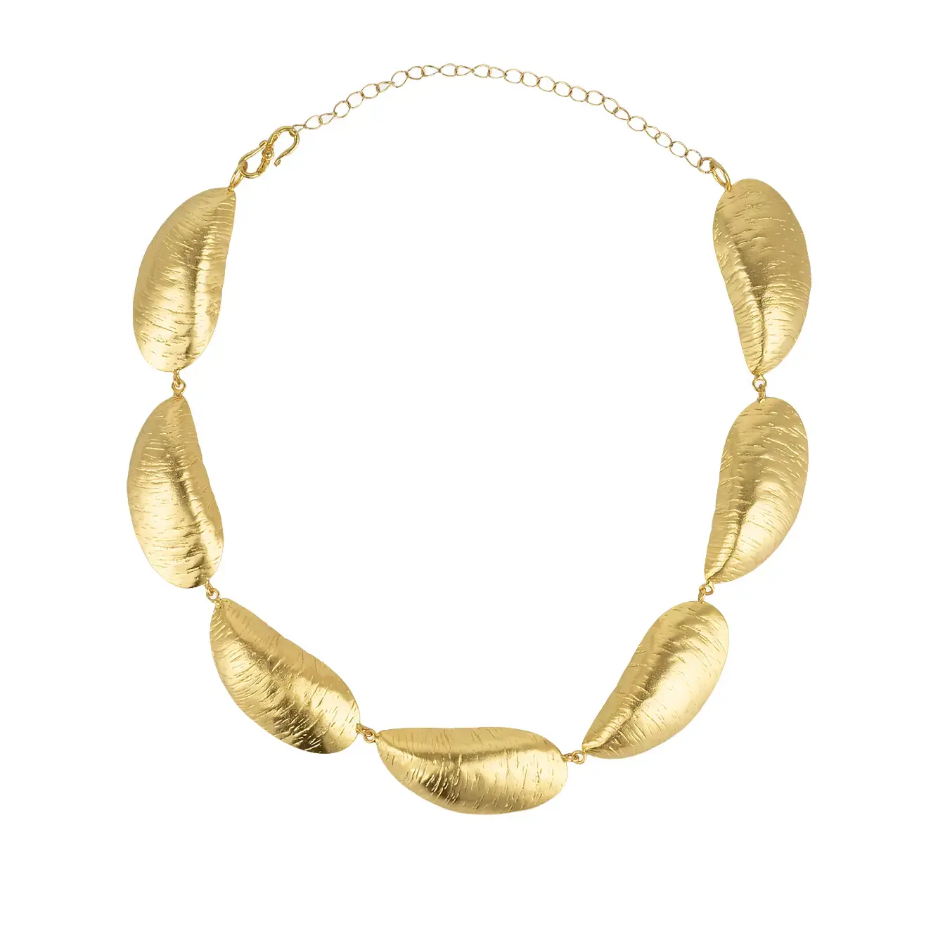 Indulge in effortless elegance with our Shells Harmony Necklace. Crafted with 24K gold plating, this necklace exudes a luxurious charm that will elevate any outfit. The intricate details of the shells add a touch of delicate beauty and timeless appeal. Create a harmonious look with this exquisite necklace.