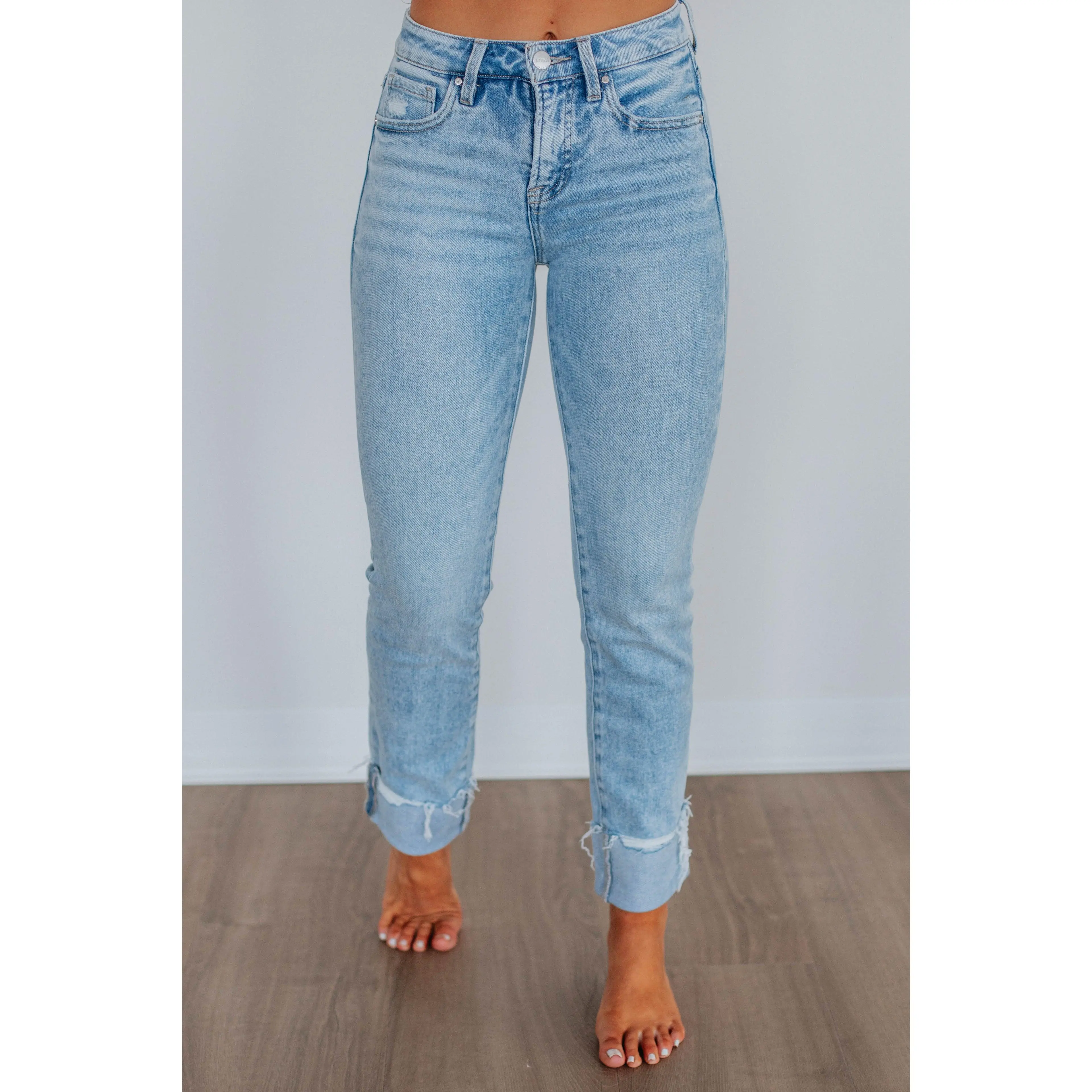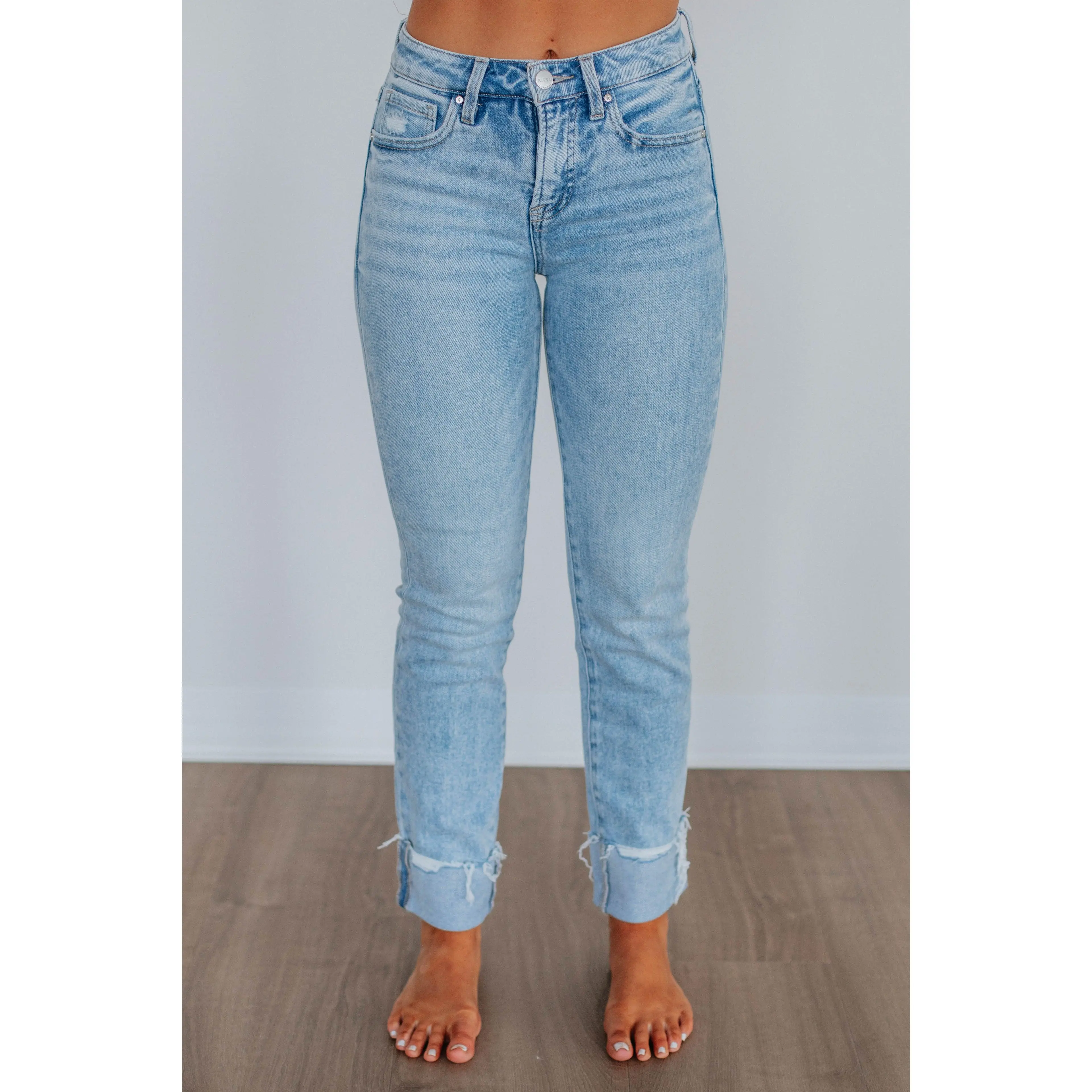 Pretty dang cute! Comfy, high waisted, adorable jeans! Love the cuff as well.