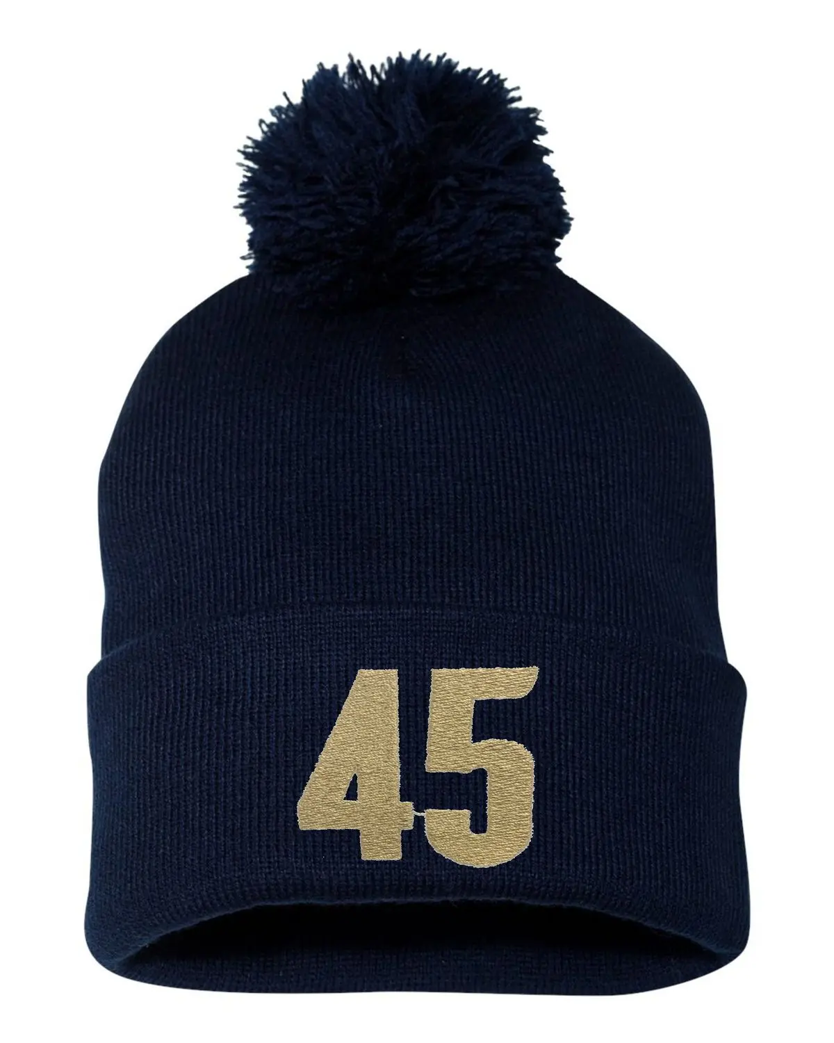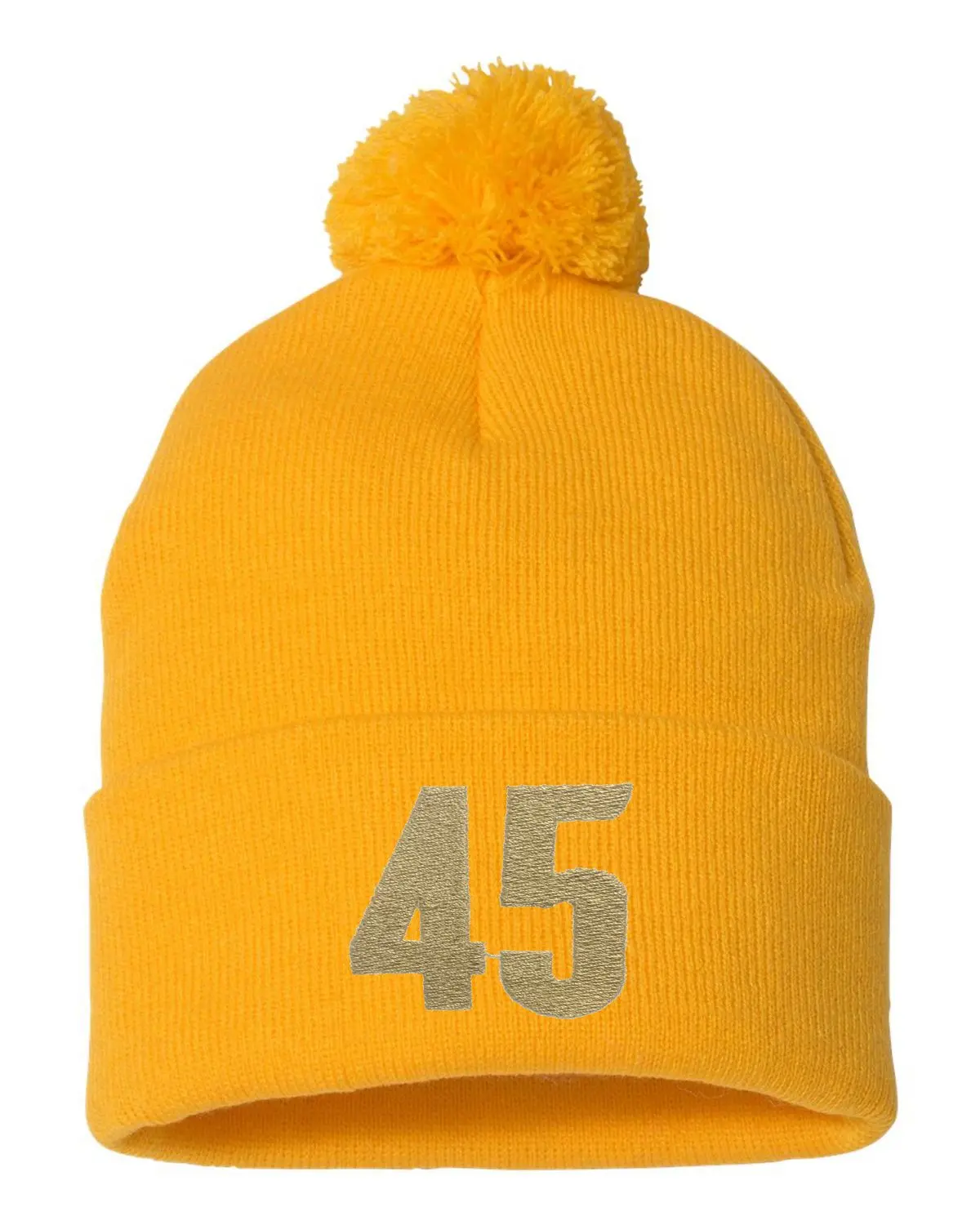 Gold 45 Trump Embroidered Knit Beanie Pom Cap