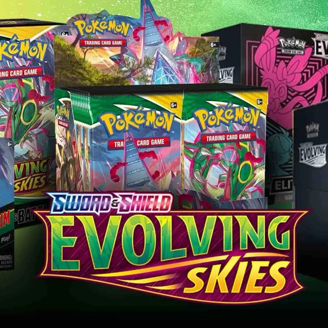 Evolving skies is one of the Hottest sets in the modern Pokémon world with amazingly beautiful Alternate arts of all your Favorite Eevee-lutions and other top Pokémon such as Dragonite V and Rayquaza