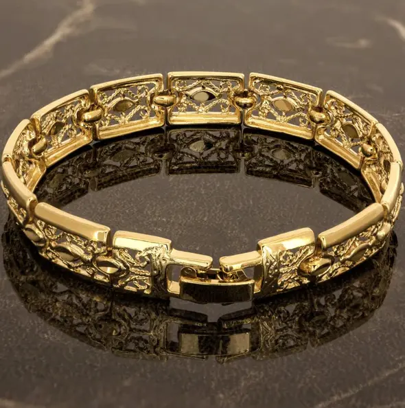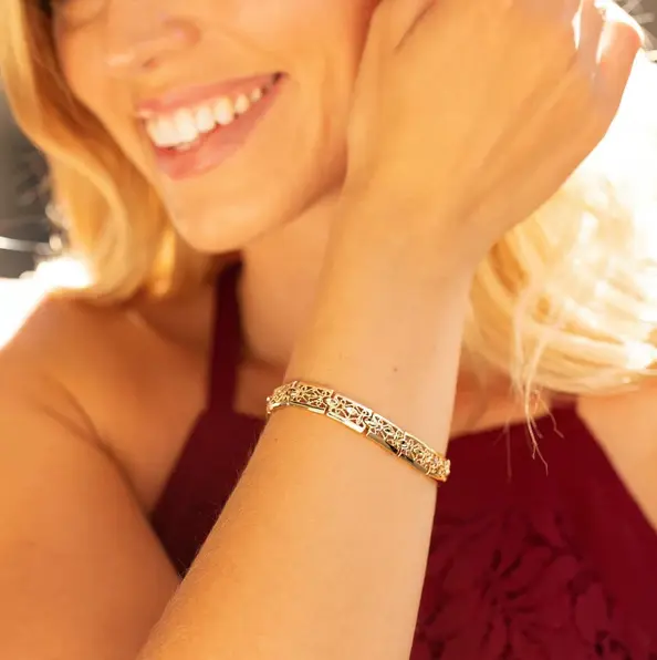 This Filigree Bracelet for women is MADE TO LAST with up to 20X more 24 karat gold plating than other electroplated fashion jewelry. This elegant bracelet makes a statement with its intricate and delicate design that naturally sparkles!