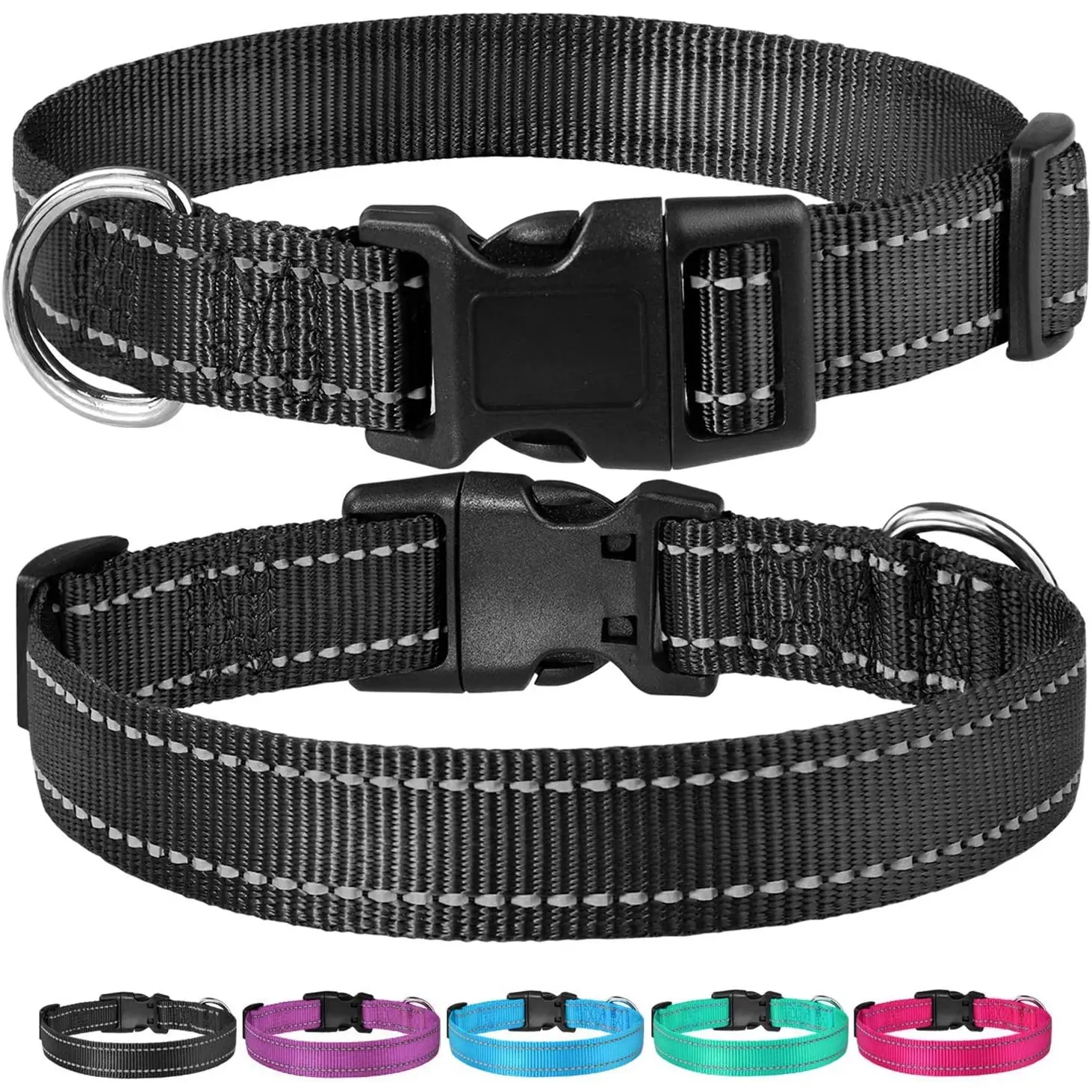 Reflective Dog Collar with Buckle Adjustable Safety Nylon Collars for Small Medium Large Dogs, Black M BOOMIBOO