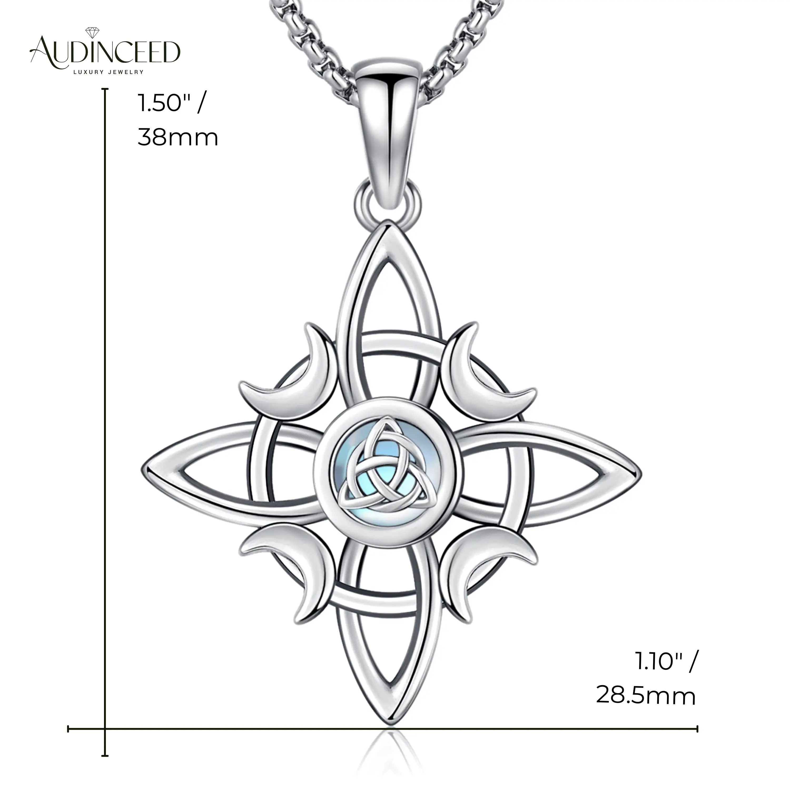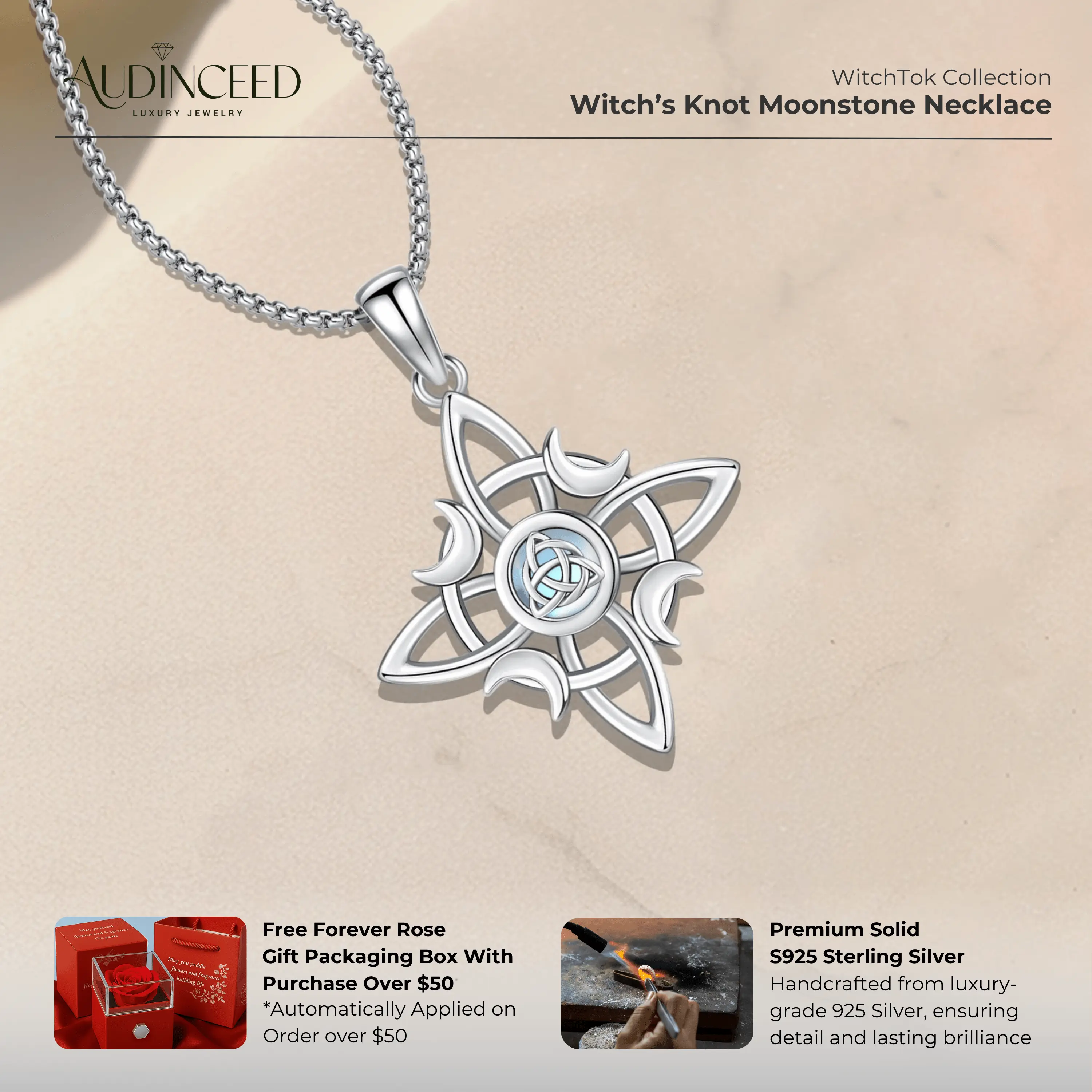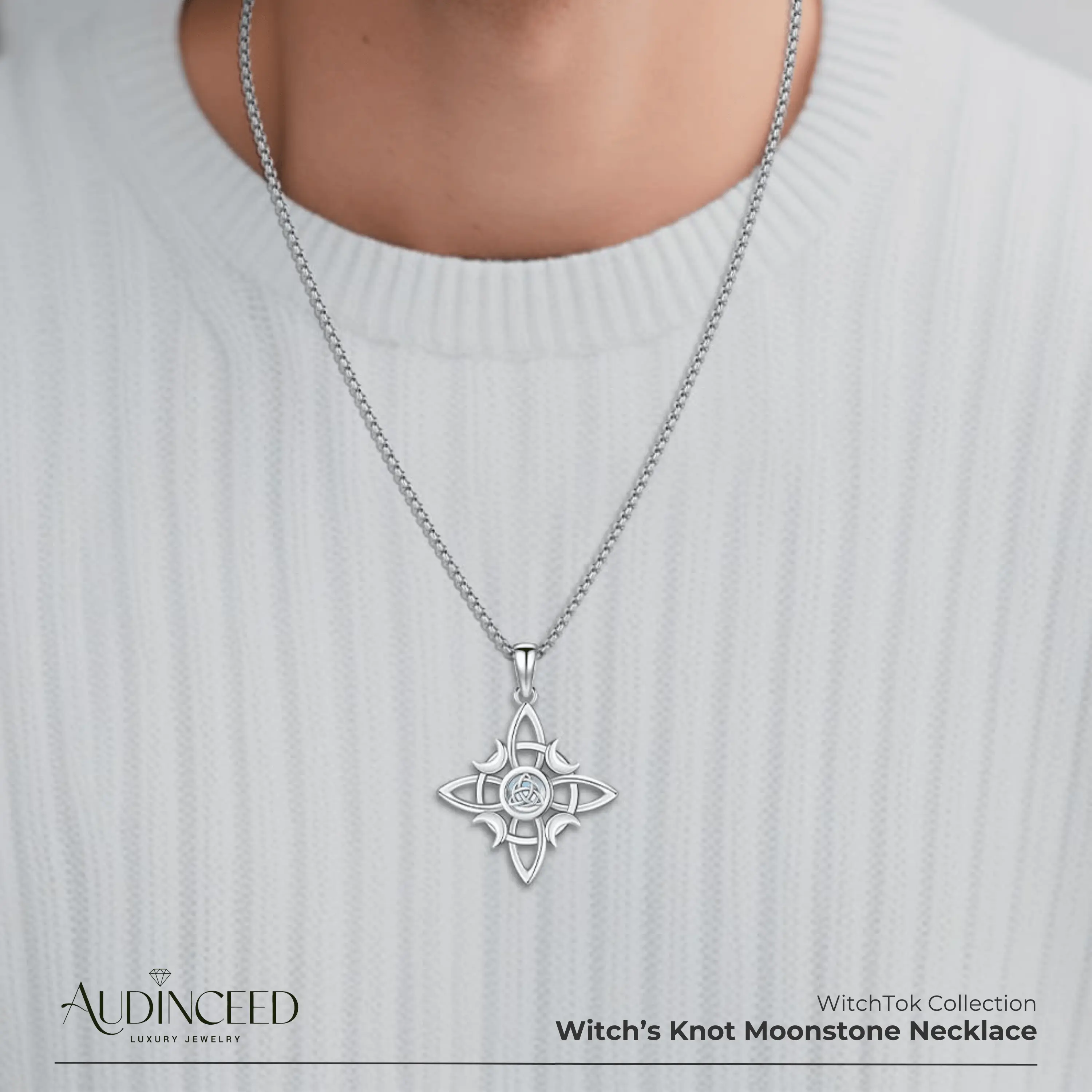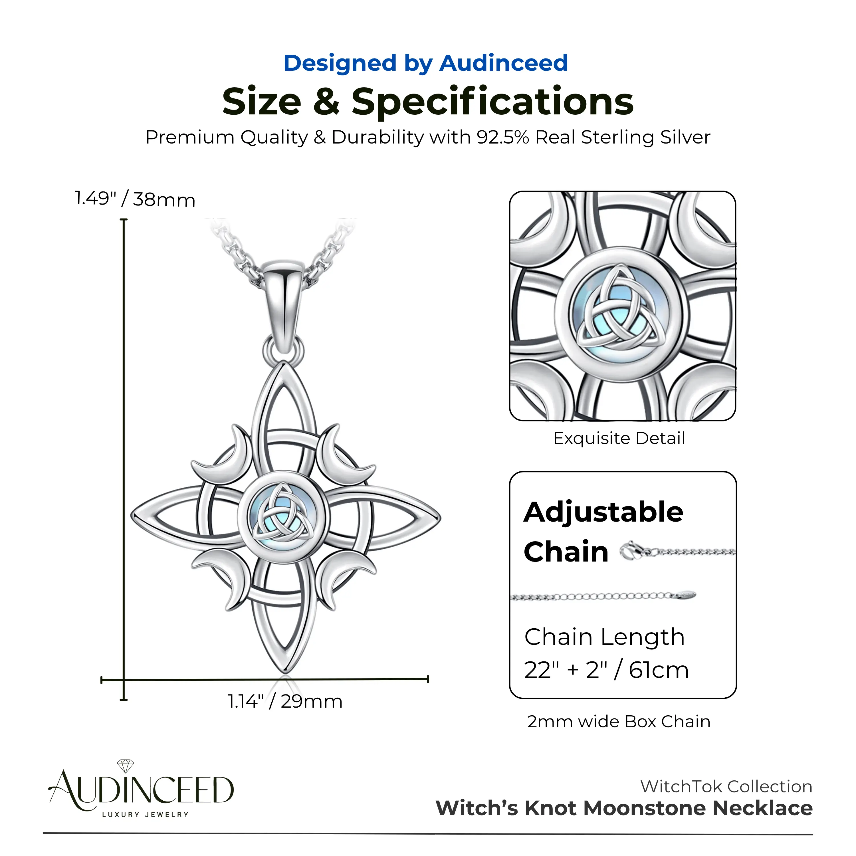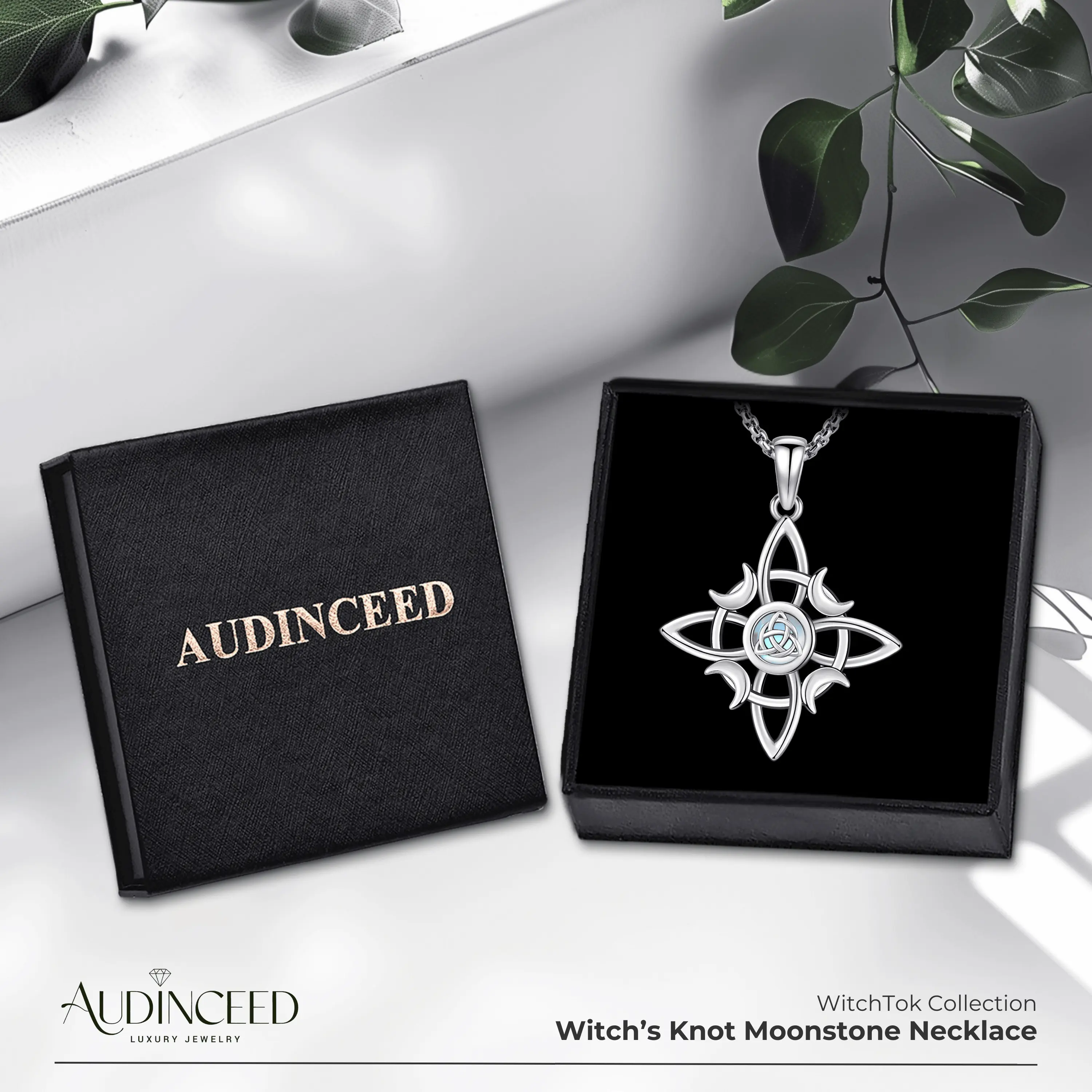 Audinceed Witch's Knot Moonstone Pendant Necklace for Women, 925 Sterling Silver Mystical Protection Jewelry