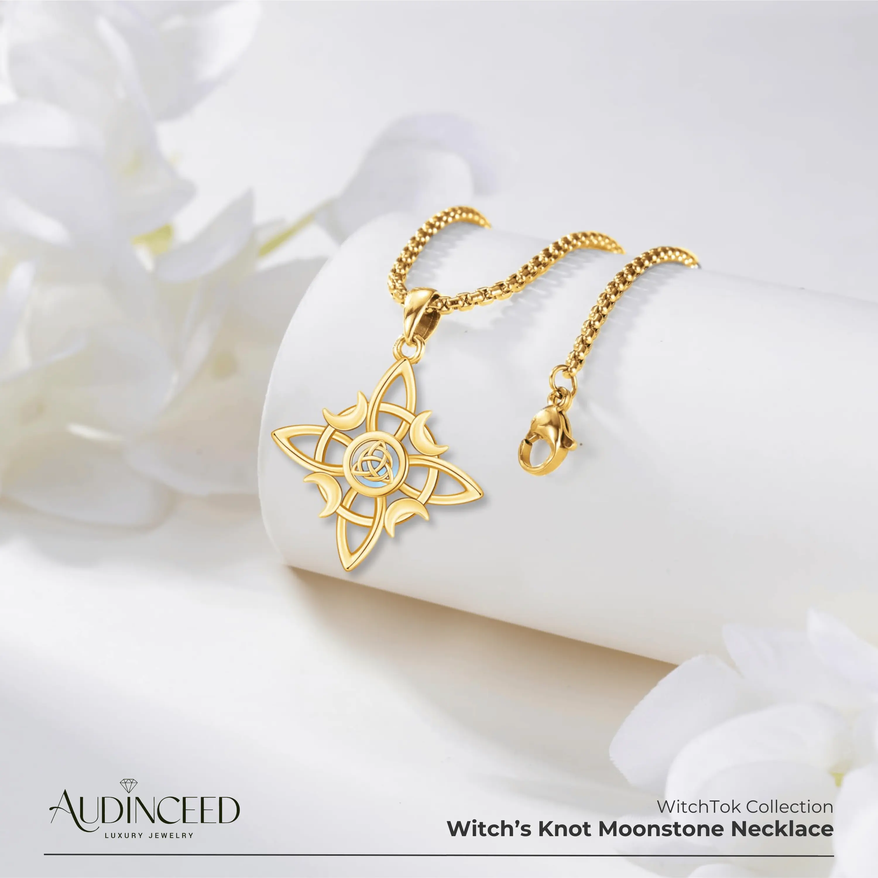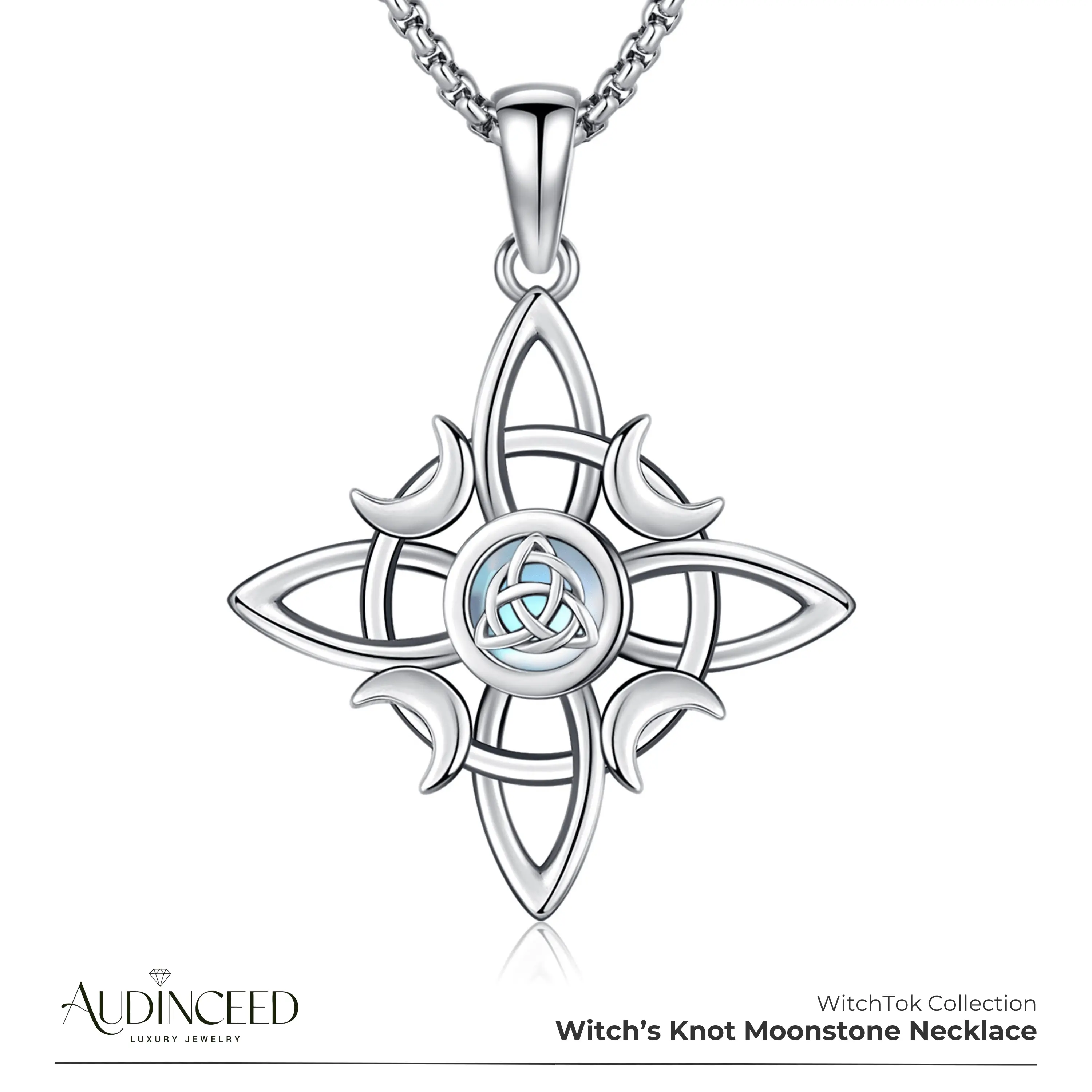 Discover the enchanting Audinceed Witch's Knot Moonstone Pendant Necklace, a beautifully crafted piece designed to symbolize protection and eternal connection. This exquisite jewelry features a luminous moonstone at its center that enhances intuition and emotional balance, making it a meaningful accessory for women seeking both mystical significance and elegant style.
