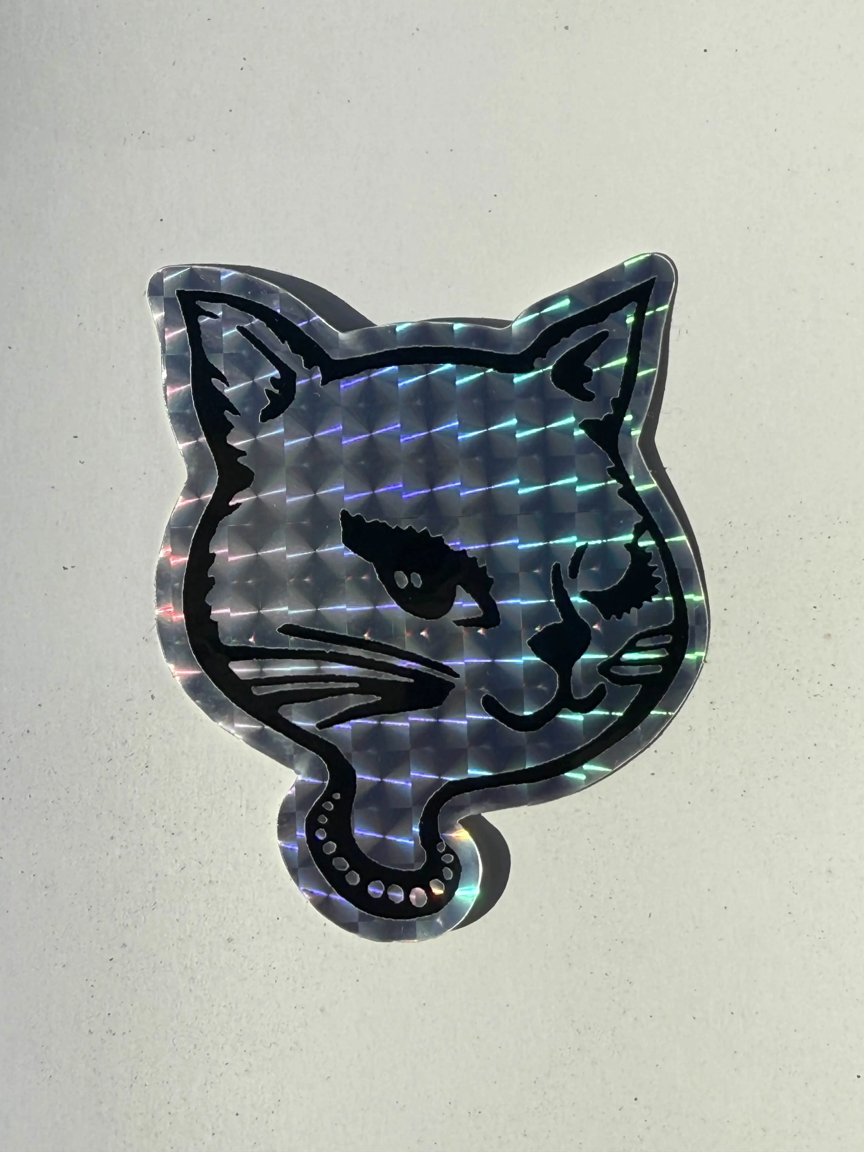 Retro Vintage 90s Winking Cat Holographic Vinyl Sticker