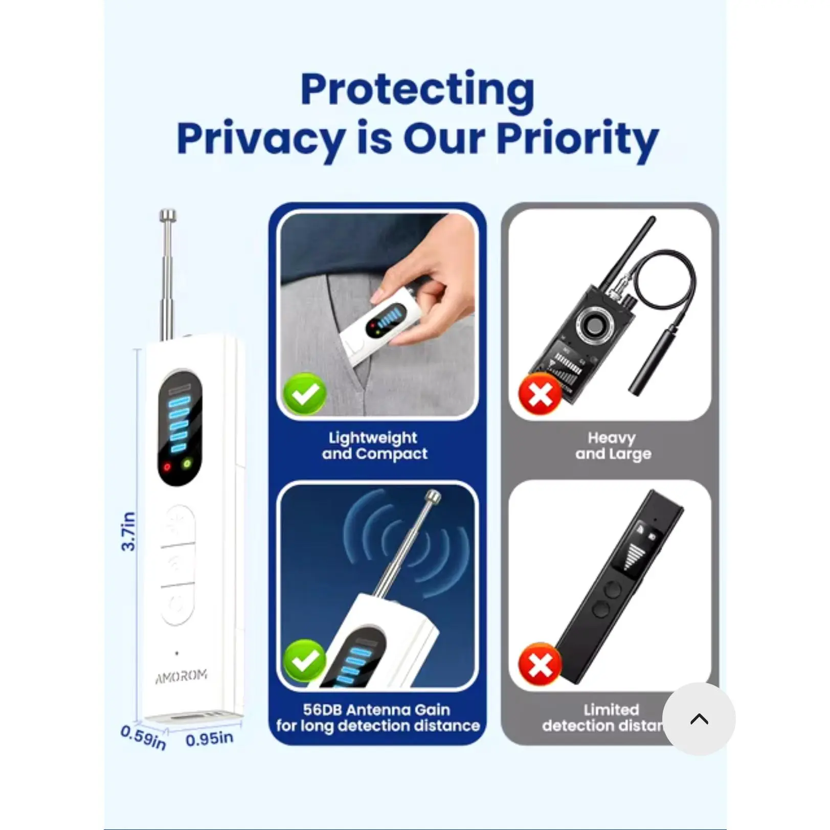Ever get that uneasy feeling someone might be spying on you? The Amorom Hidden Camera Detector is your trusty sidekick for peace of mind. This sleek, pen-sized gadget scans your surroundings for hidden cameras, GPS trackers, and bugs with precision. With six adjustable sensitivity levels, you can tailor your search from close-up to a 10-meter range. Its LED signal indicator and magnetic detection make spotting sneaky devices a breeze. Lightweight and compact, it’s perfect for business trips or everyday use. Plus, the rechargeable lithium-ion battery powers you through 24 hours of continuous detection, all charged conveniently via USB Type-C. Included in the box is the detector itself and a charging cable, ready to keep your privacy intact. Stay one step ahead—grab this handy gadget and travel worry-free!