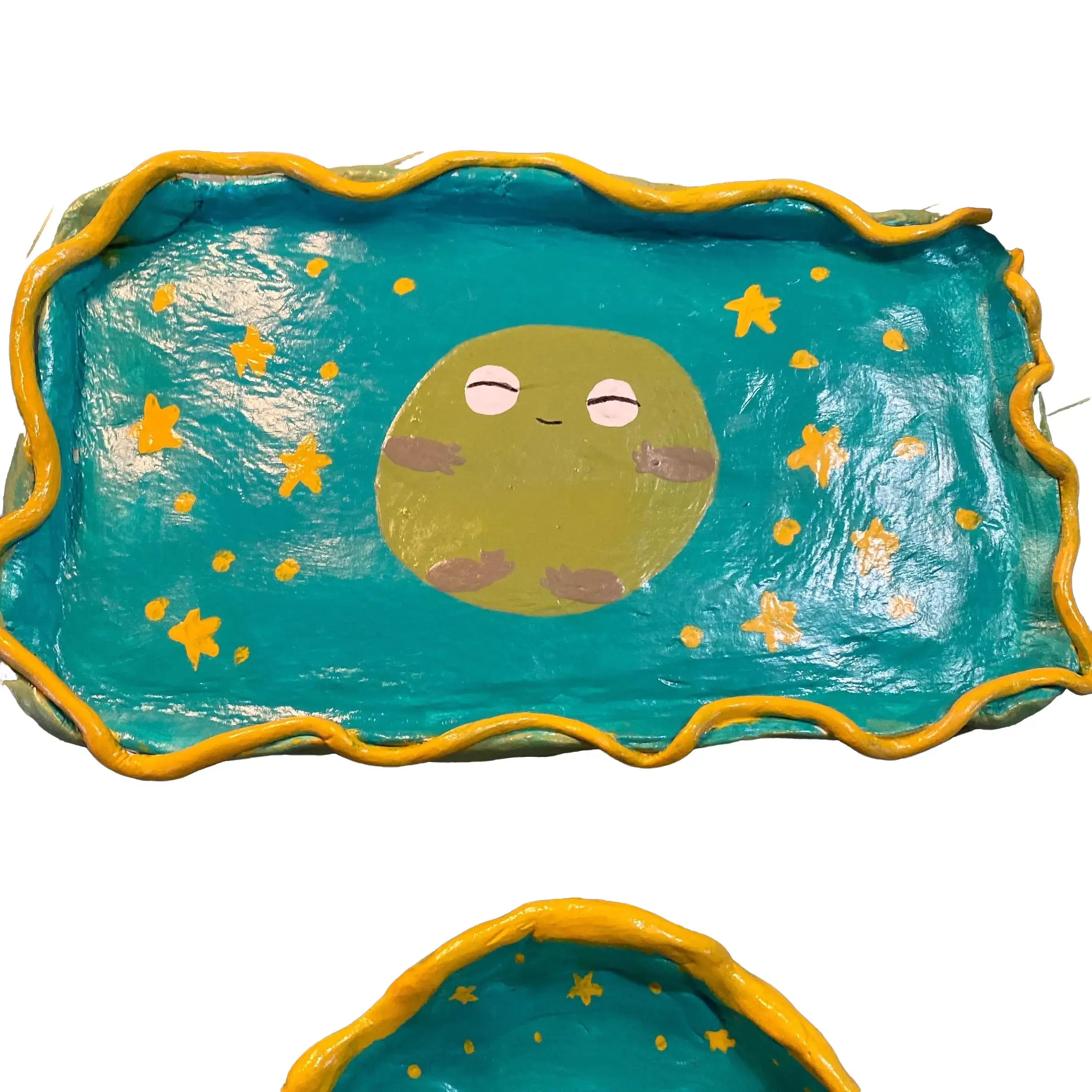This cute rolling tray is perfect for you and your friends. Smug little froggiee will keep anyone company. This tray even has a pouring spout in the corner to return your trinkets into their container when you are done.