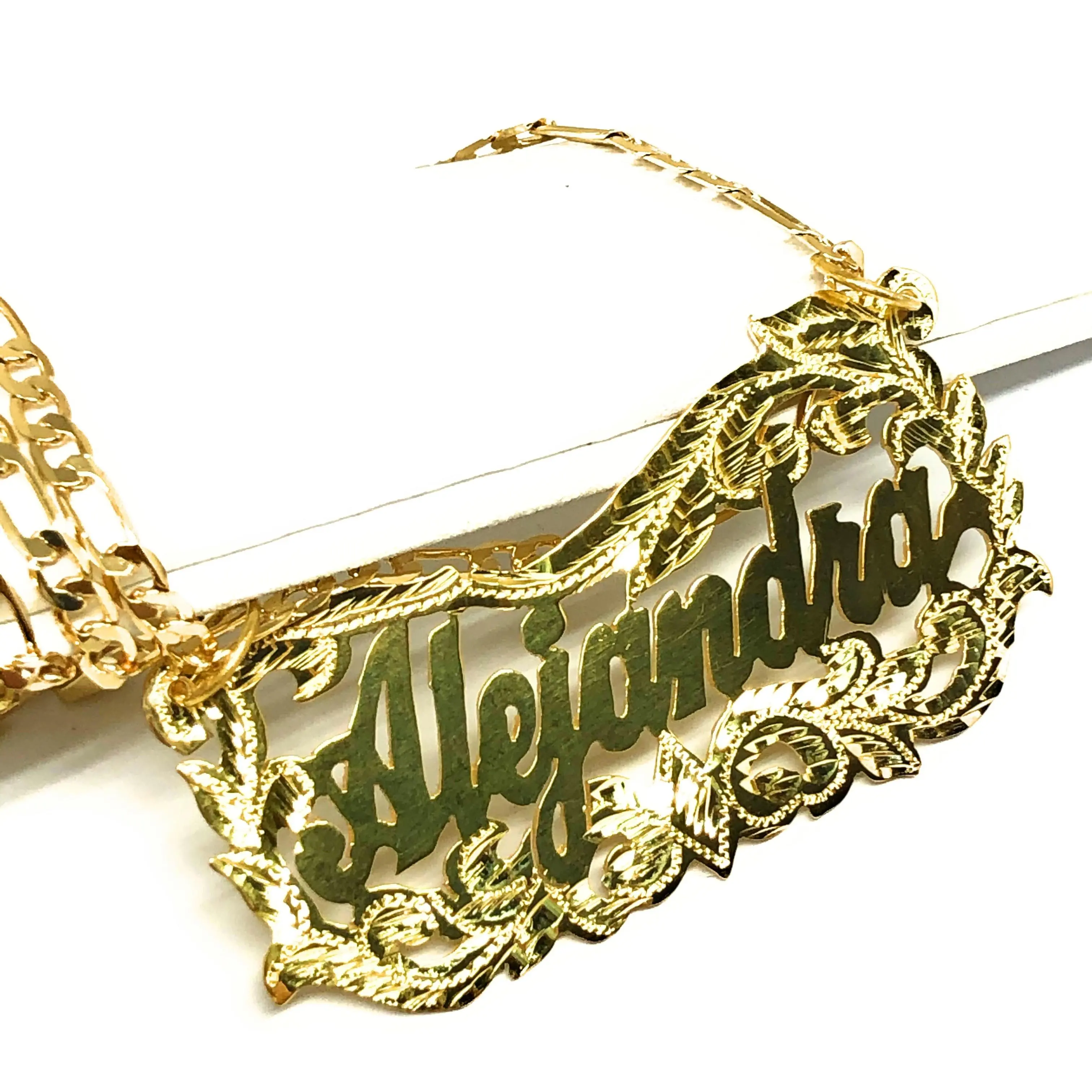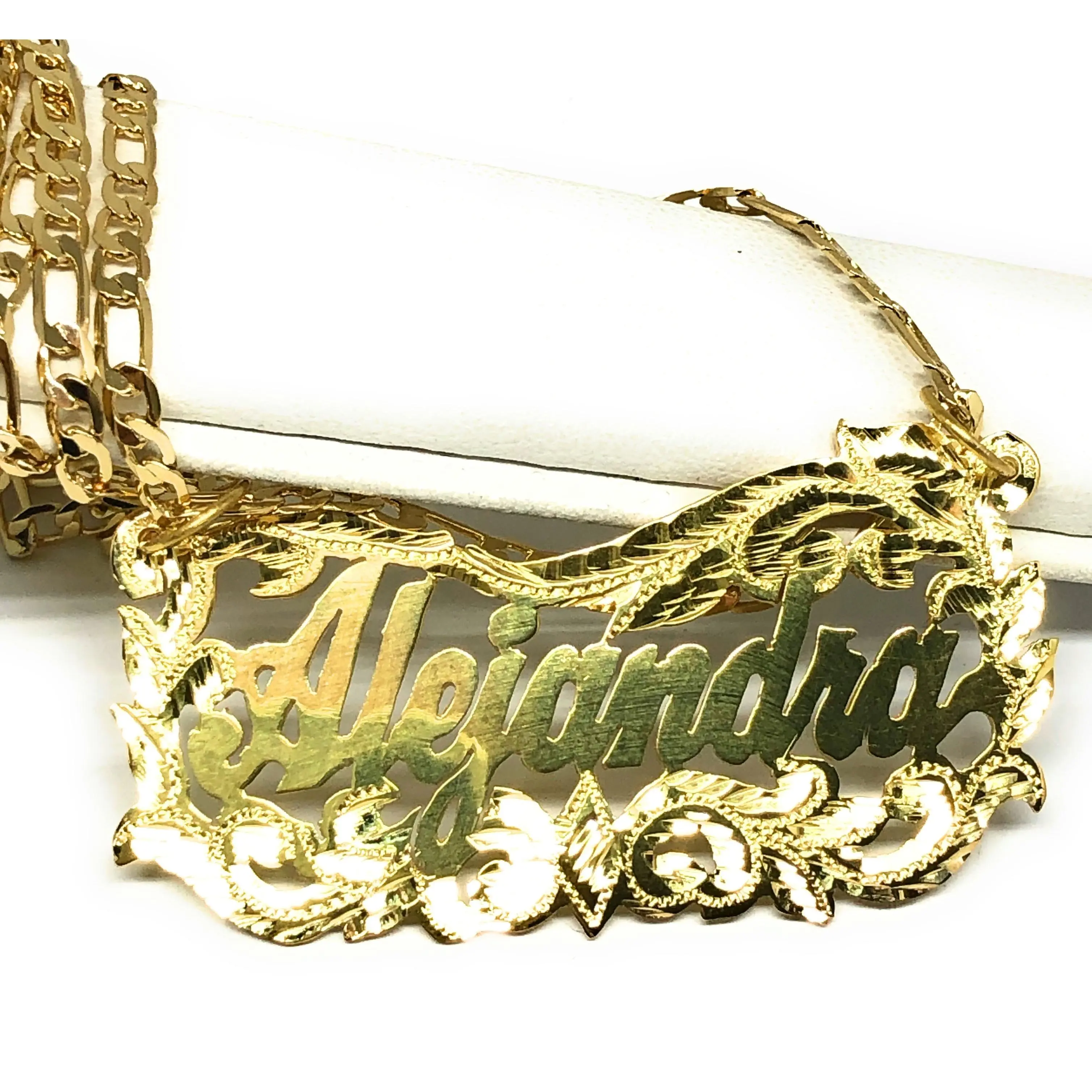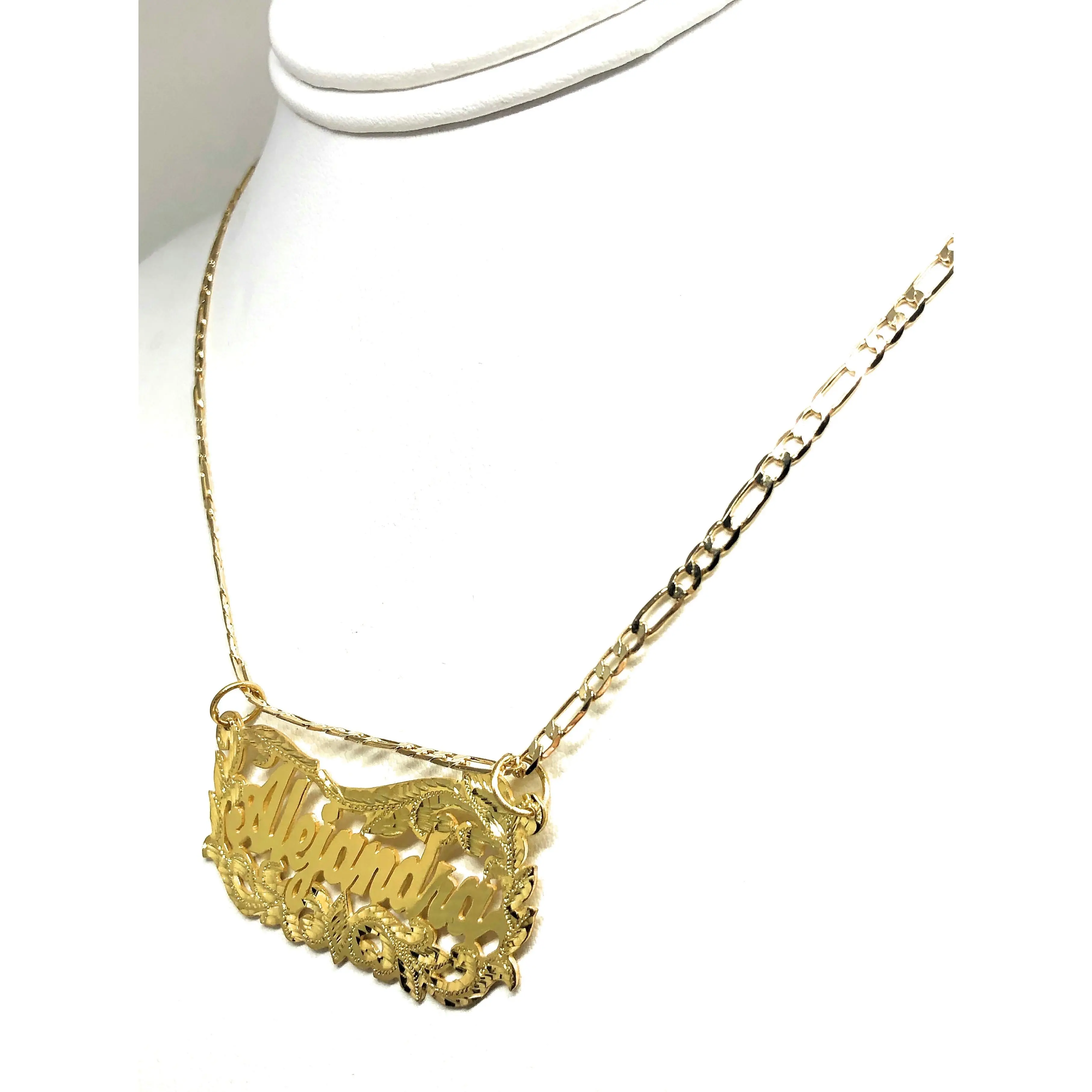 ·.925 STERLING SILVER OVER GOLD PLATED NAMEPLATE.