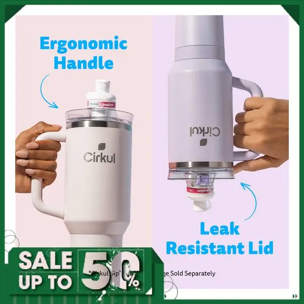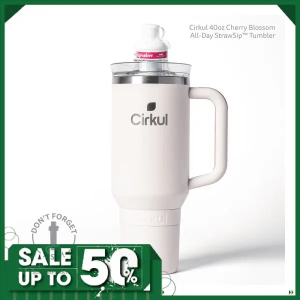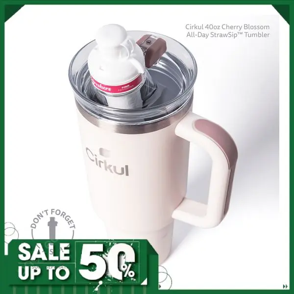 Cirkul 40oz All-Day StrawSip Double-Wall Insulated Stainless Steel Tumbler with Handle, Cherry Blossom (Light Pink)