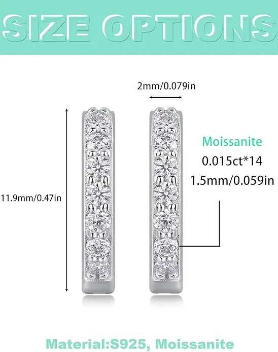 [Grace] Synthetic Moissanite Ear Hoops Gifts for Women Sparkling Wedding Gift, 925 Sterling Silver with 7 Layer 18K White Gold Plated Hypoallergenic Round D Color VVS1 Clarity Lab Create Diamond Earrings