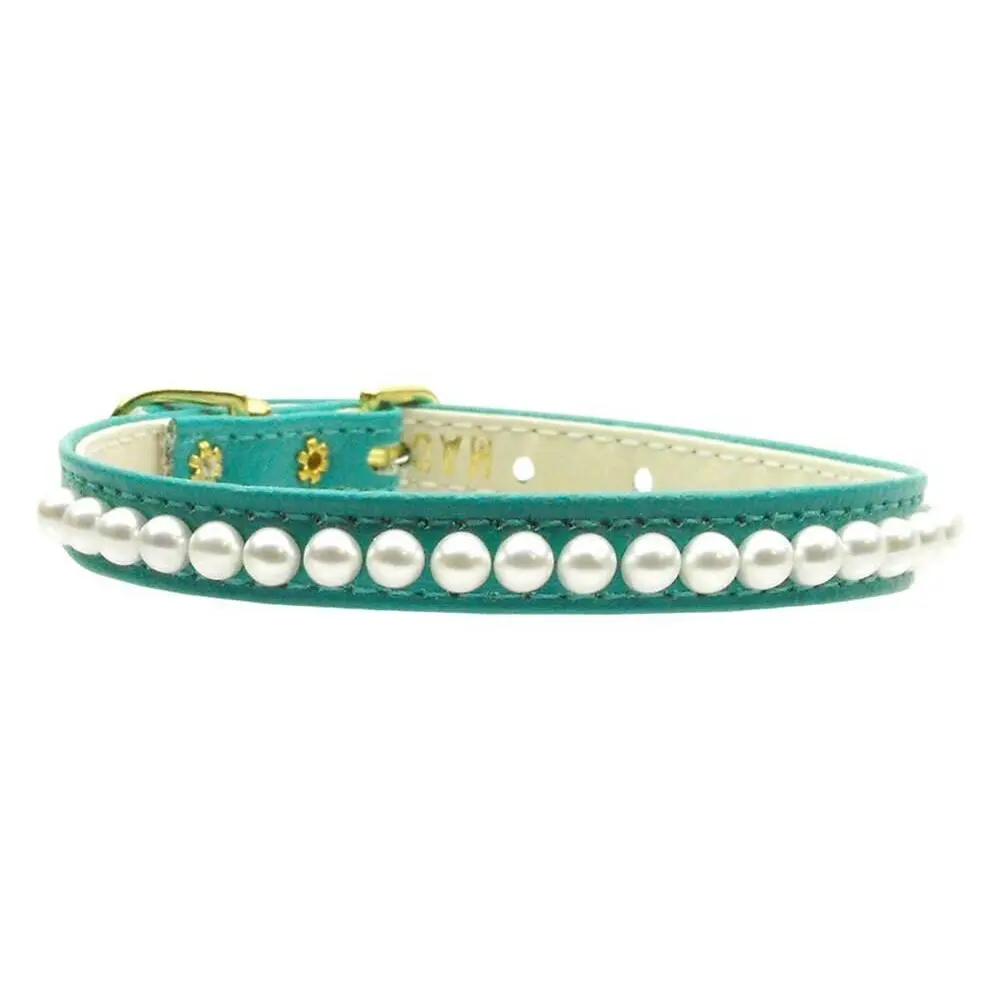 A glamorous dog collar! This ⅜" wide collar is skillfully adorned with one row of dazzling pearls.
