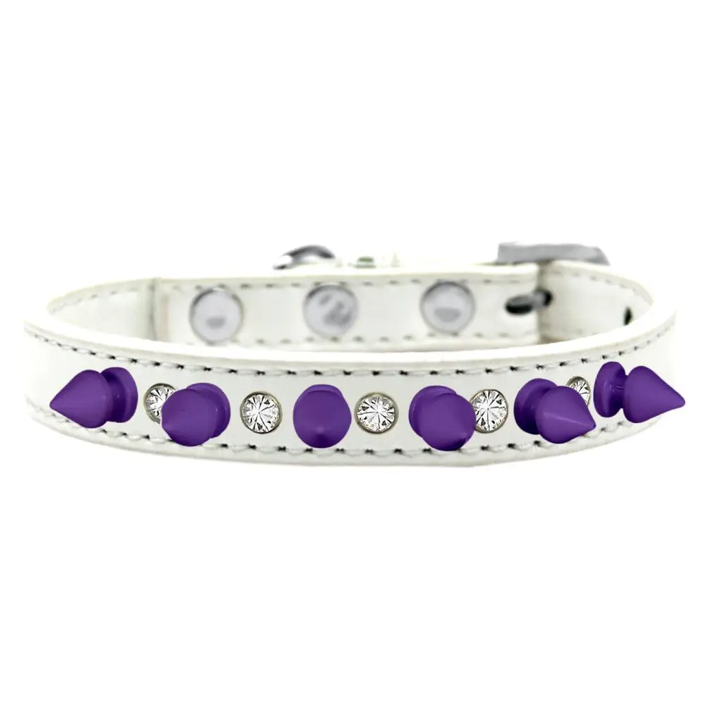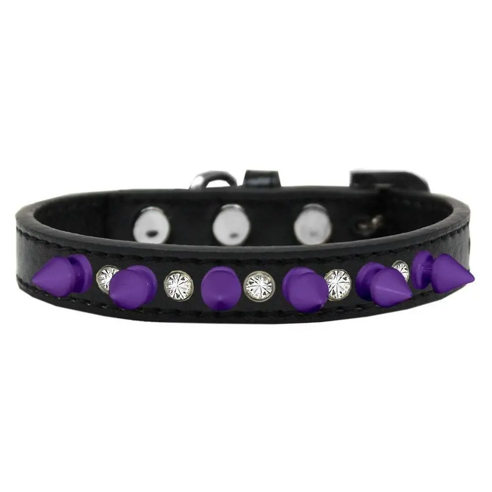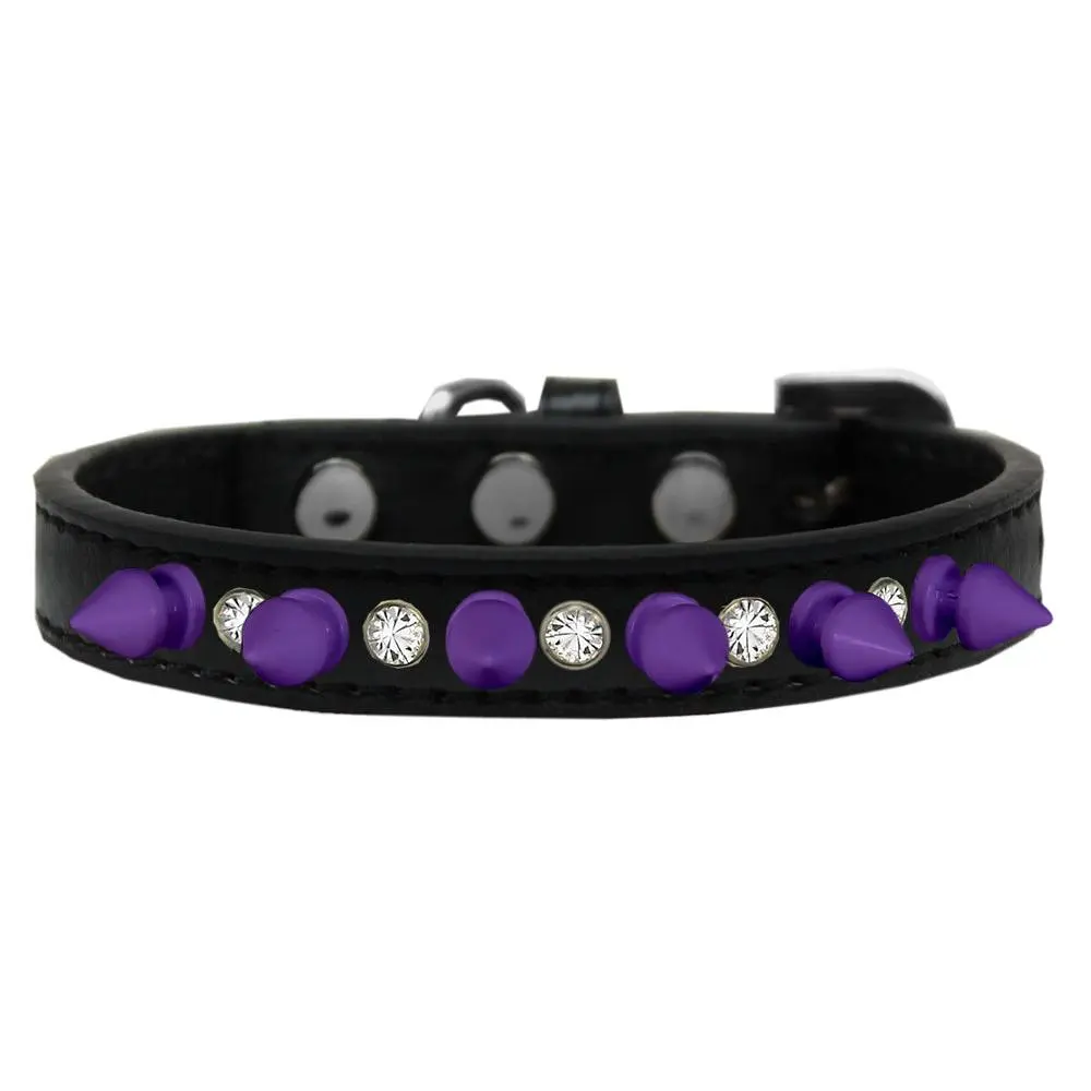 Pet and Dog Spike Collar, "Clear Crystals & Purple Spikes”