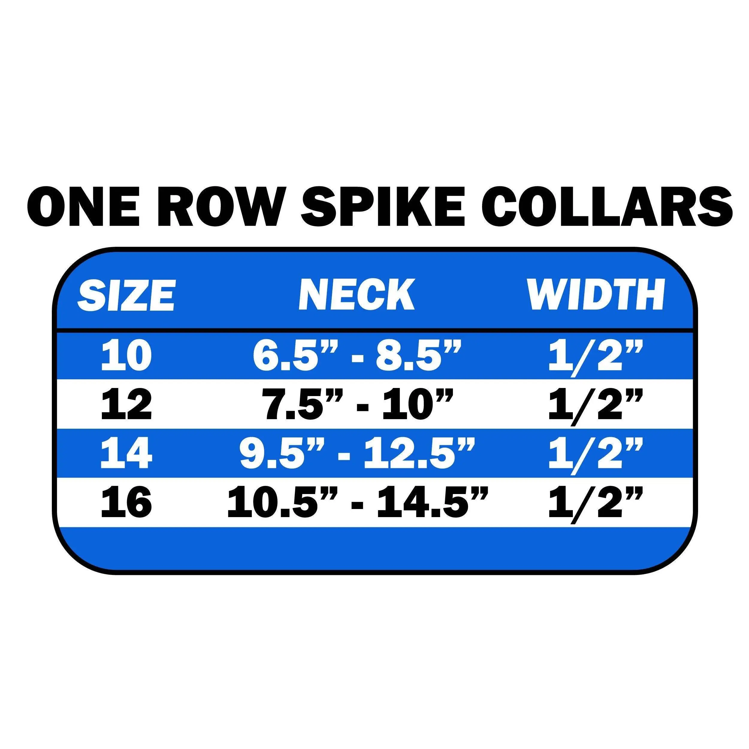 These are 1/2" wide collars with one row of alternating clear crystals and spikes. There is a lot of bling and attitude packed into these collars!