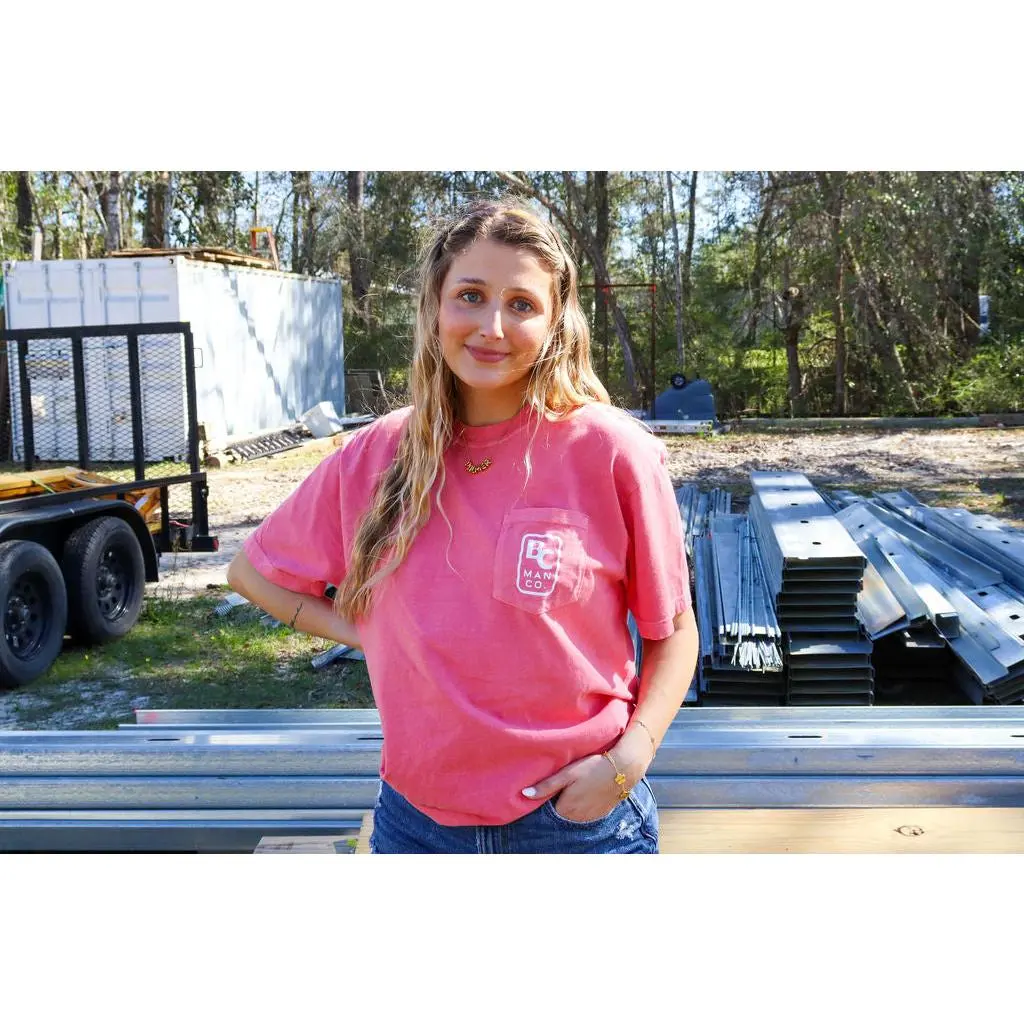 Be proud of your hard work and show it off with our Signature Pocket Tee. This Comfort Colors shirt displays our logos on both the pocket and the back of the shirt.