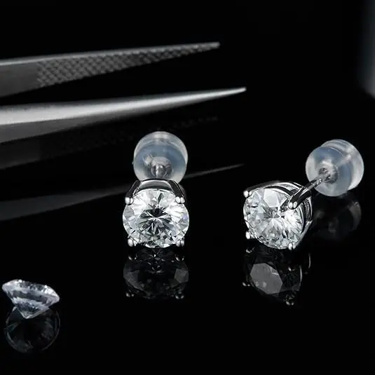 [Pure Love] Four Claws Stud Earrings 0.5/1/2/3/5 Carats Synthetic Moissanite Stud Earrings Gifts for Men Women Birthday Anniversary Party Gifts Sparkling 925 Sterling Silver with 7 Layer 18K White Gold Plated Hypoallergenic Round D Color VVS1 Clarity