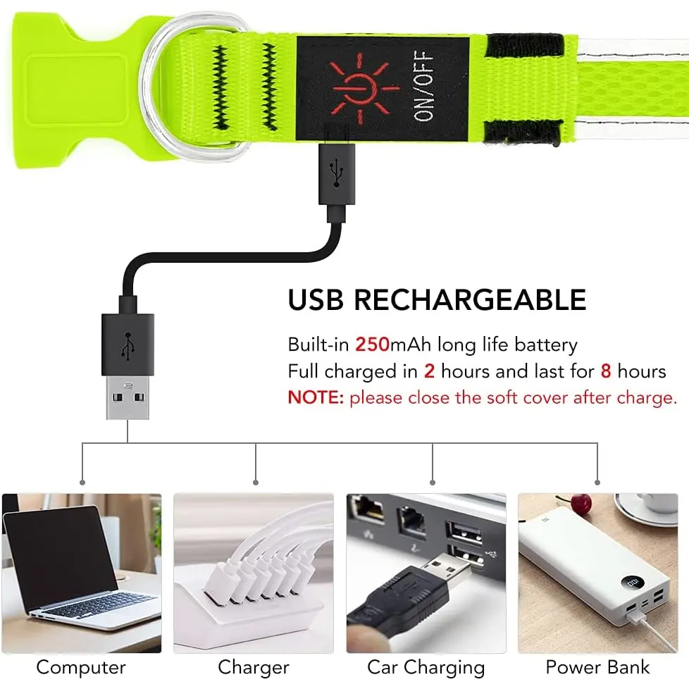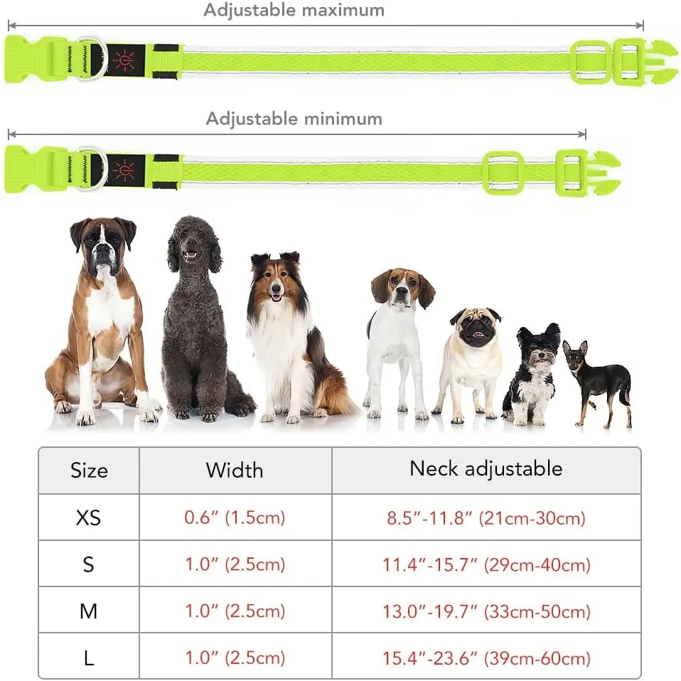 Rechargeable LED Dog Collar - Adjustable, Reflective & Flashing for Night Safety, Glow-in-the-Dark