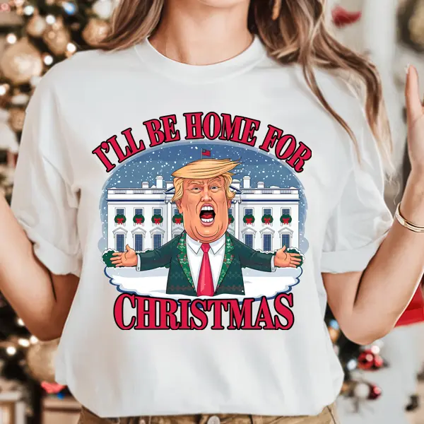 Get into the holiday spirit with this hilarious Donald Trump I'll Be Home for Christmas Shirt featuring a funny Trump graphic in front of the White House. Available in t-shirt, sweatshirt, hoodie, and graphic tee styles, this trendy Xmas apparel is perfect for Tiktok, social media, and influencers. Stay ahead of the fashion game with this viral and most searched item, sure to be a hit in 2024.