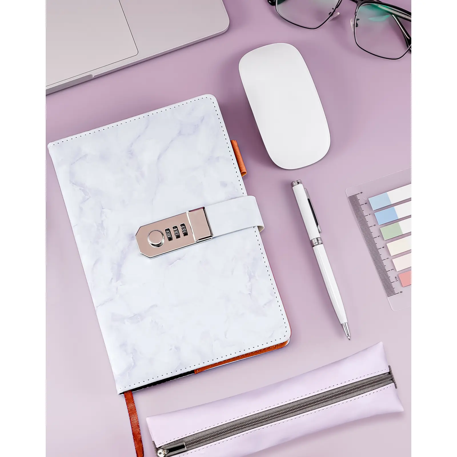 ·Safety Password Lock: The locked journal features a purple marble cover design. The initial password is 0-0-0, and you can change it. The password lock ensures secure personal information. 🔒