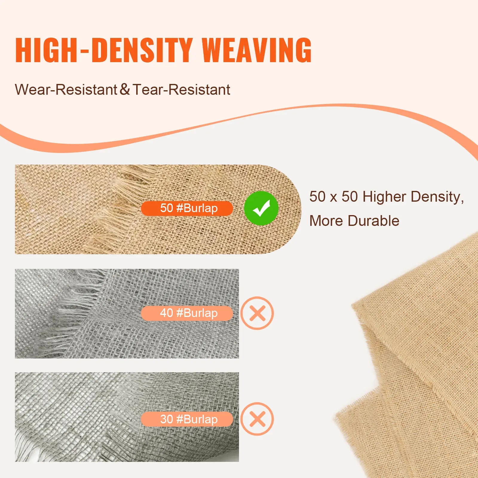 • Sturdy and Durable: This burlap fabric roll is not just a decorative piece; it's a reliable companion. With a solid density of 50 x 50 and a weight of 270 g, it's built to last. It avoids wearing and tearing, giving you a beautiful look for your decoration without worrying about quick deterioration.