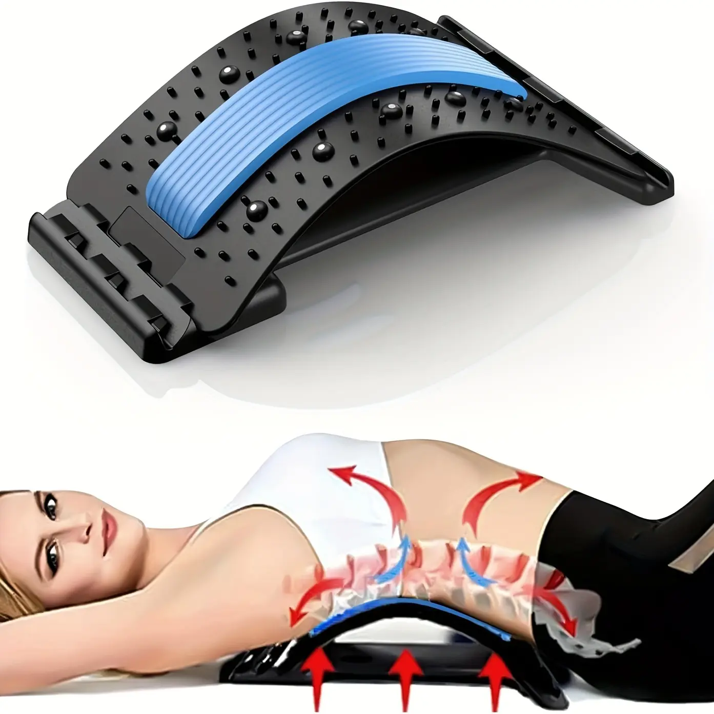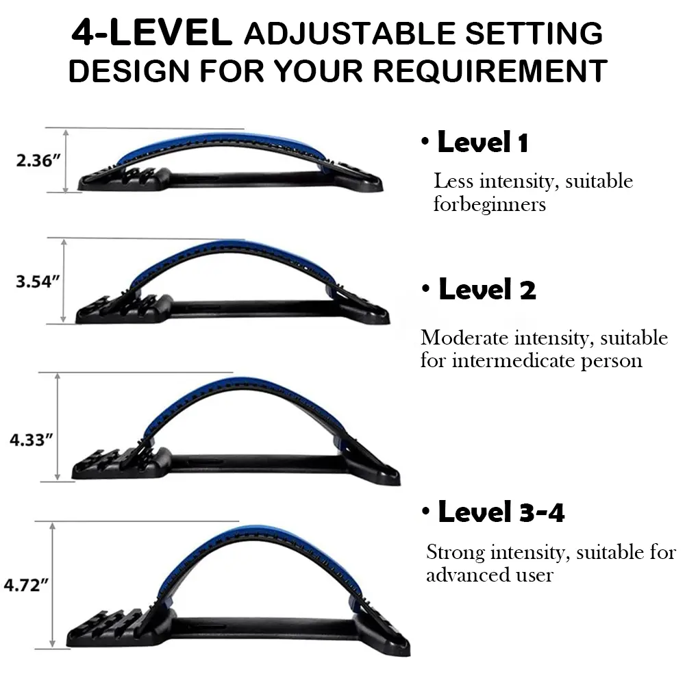 4-Level Adjustable Back Stretcher | Spine Deck for Lower Back Pain Relief | Posture Corrector & Lumbar Support Traction Device
