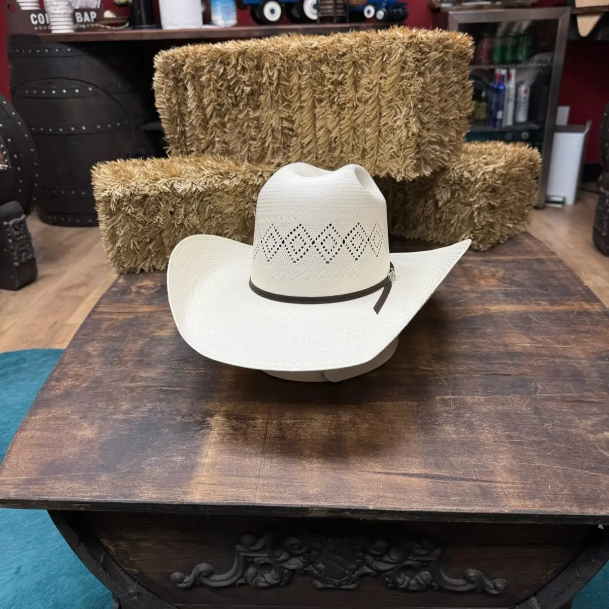 Introducing the 100X Minnick style straw hat, a perfect accessory for any outfit. This hat features a wide brim that provides ample sun protection for the face and neck, making it a great choice for outdoor activities. The Minnick style of the hat is known for its classic and timeless look, making it a versatile accessory that can be worn for years to come.