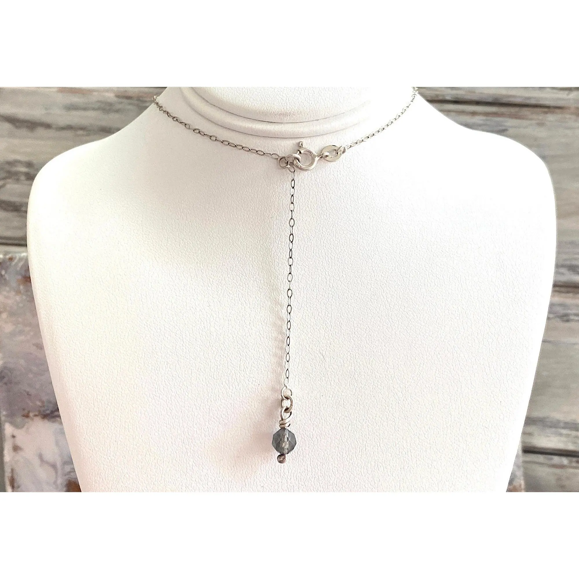Includes a 16" 1.4mm cable link chain with a 2" extender and a tiny and flirty labradorite bonus dangle at the end of the extender.