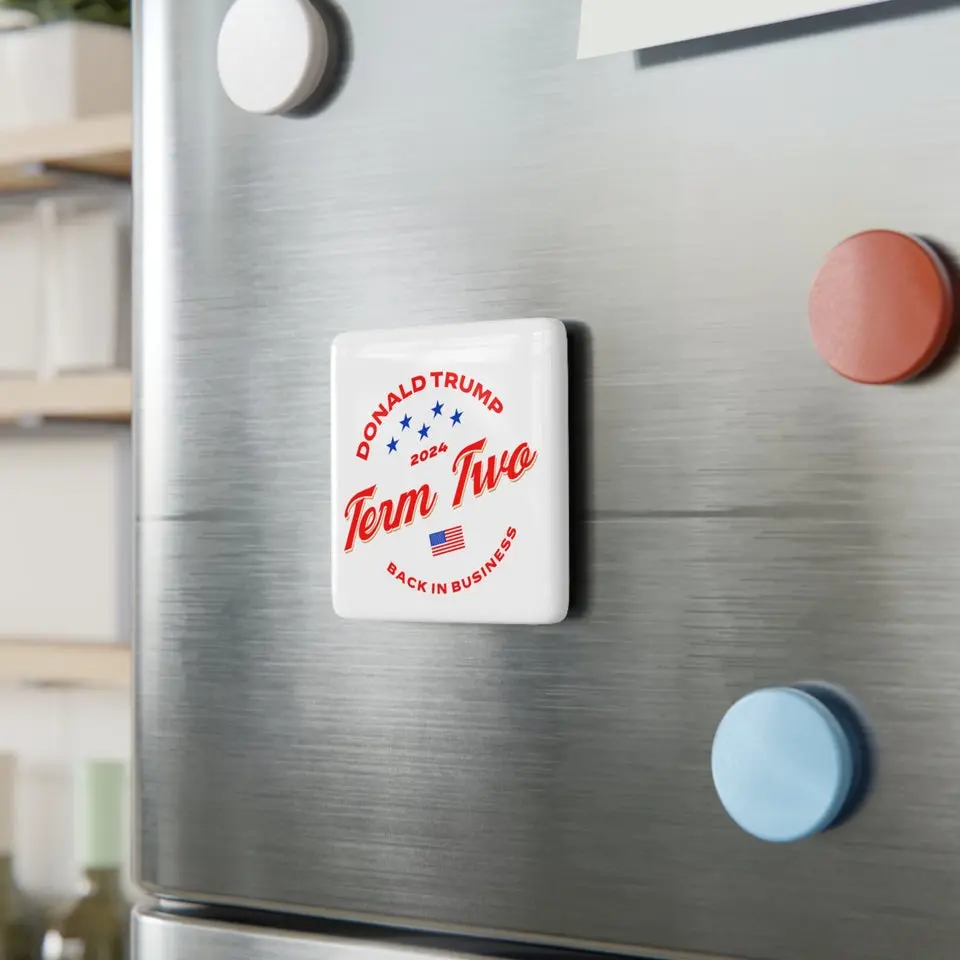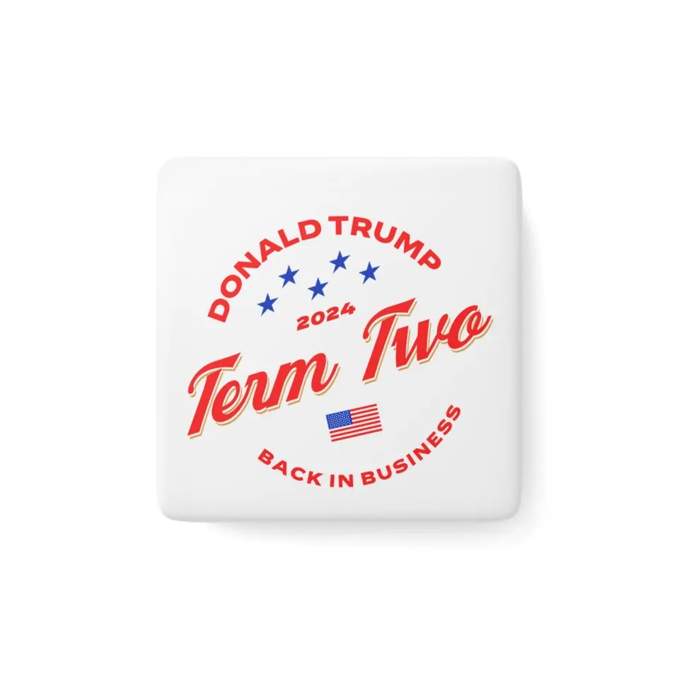 Show your support in a unique way with this Trump Term Two Porcelain Magnet, the perfect personalized touch for any space. Whether you're adding personality to your kitchen fridge, office, or any wall in your home, this magnet is a stylish and fun way to display your support. The glossy finish and vibrant color reproduction make your design pop, while the durable porcelain ensures it lasts for years to come.