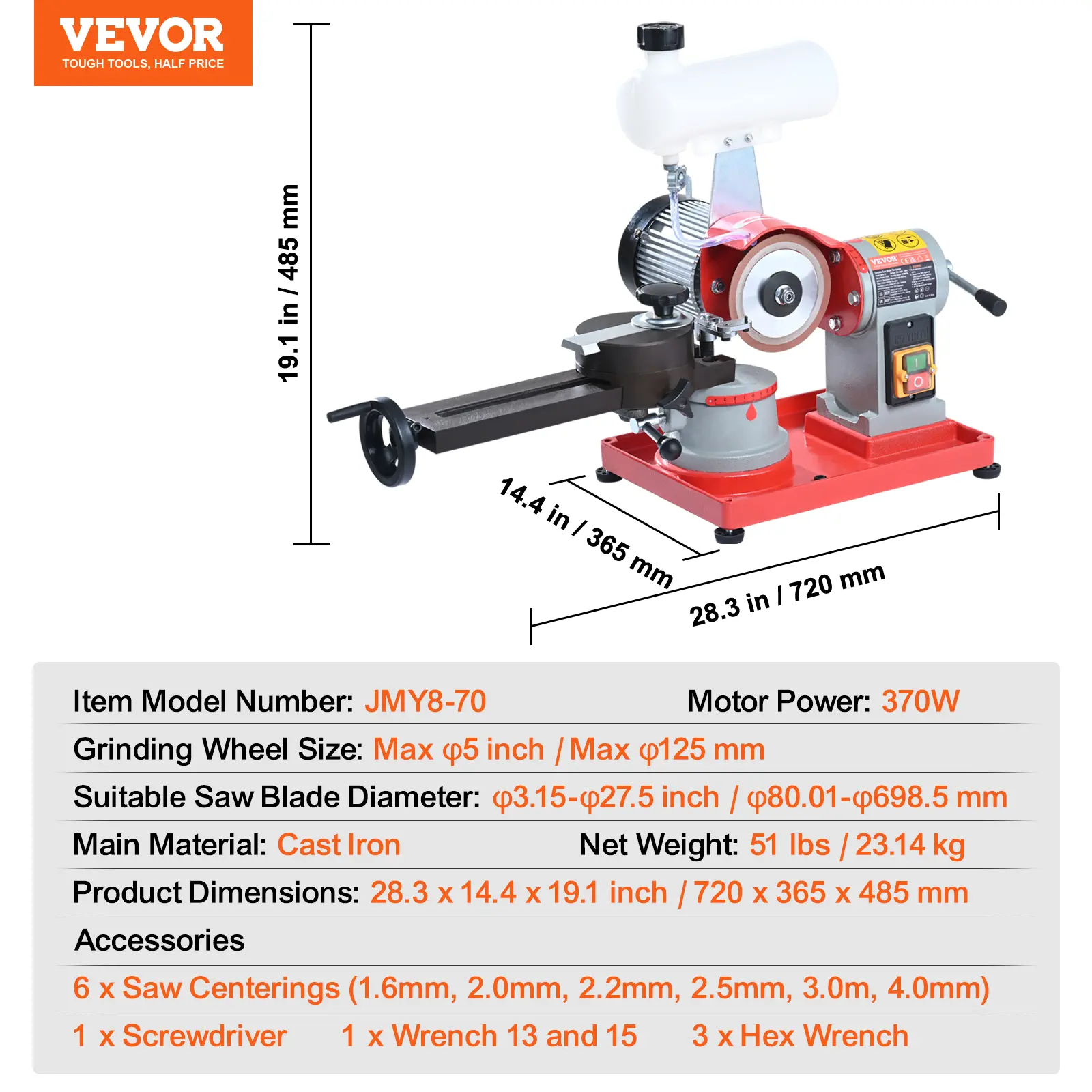 • Sharper Blades, Smoother Cuts: Say goodbye to dull blades! VEVOR 370W powerful water injection circular saw blade sharpener, running at 3600RPM high speed, efficiently sharpens your saw blades to their former sharpness, leaving them razor-sharp, resilient, and burr-free.