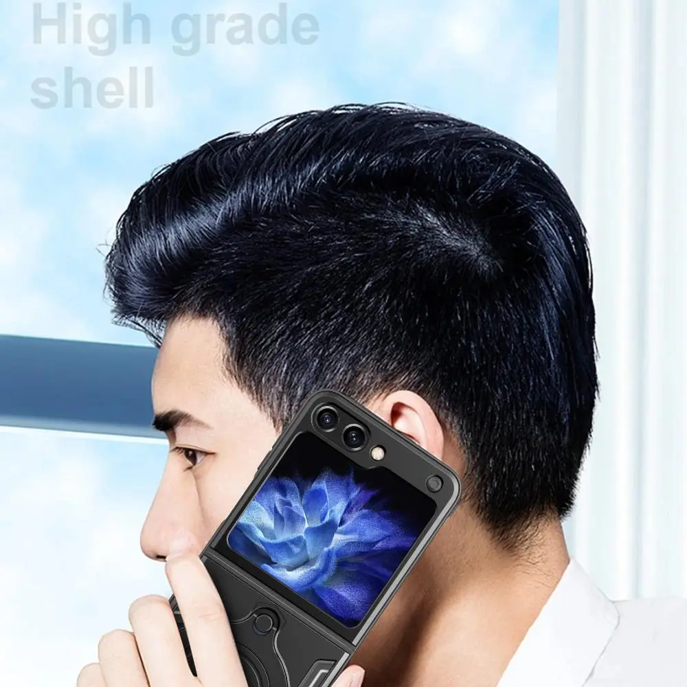 Ever struggled to find the perfect angle for watching videos or video chatting on your Galaxy Z Flip? This Magnetic Slide Camera Cover Phone Case has your back. With a strong magnetic suction, it securely attaches to your phone while letting you fold and flip it effortlessly. The 360-degree rotatable kickstand lets you prop up your phone at any angle, making hands-free viewing a breeze whether you're cooking, working, or just chilling. Made from durable TPU material, this case offers solid protection without bulk, combining an armor ring and kickstand in one sleek design. Compatible with Galaxy Z Flip 4, 5, and 6, it’s tailored to fit your device perfectly. Inside the box, you get one magnetic phone case with a built-in kickstand ready to upgrade your mobile experience. Ready to enjoy hands-free convenience and reliable phone protection? Grab this case and flip your phone game to the next level!