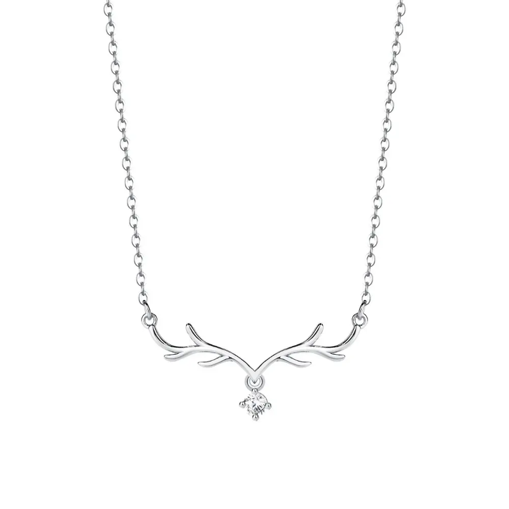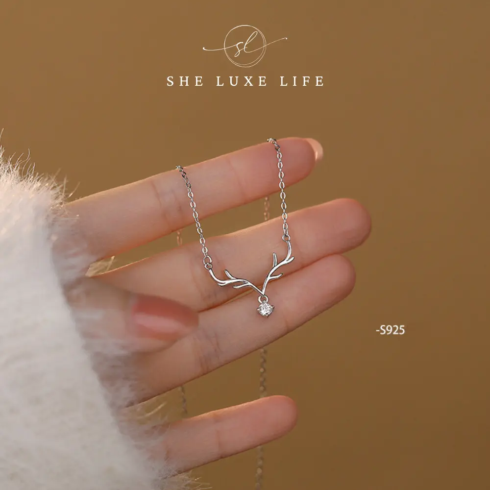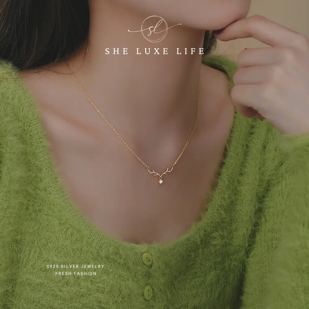 SheLuxeLife | S925 Sterling Silver "One Deer with You" Deer Antler Necklace for Women – Fresh Forest Style, Elegant Collarbone Chain, Christmas Gift