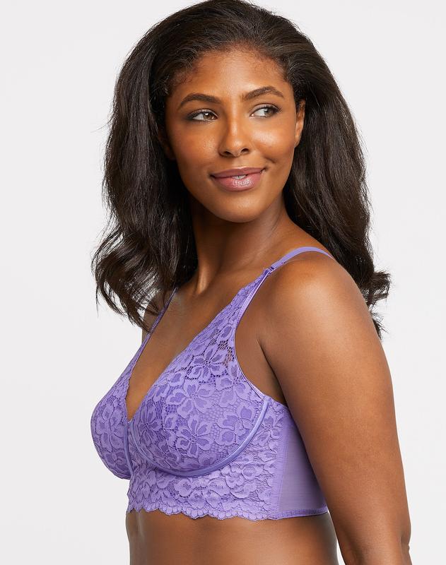LOVELY LACE Sexy meets comfort in the MaidenformÂŽ Pure ComfortÂŽ Wireless Longline Lace Braletteâa flattering blend of fashion and ease. This wireless bralette is designed with all-over lace and lightly padded foam bra cups to offer natural shaping and soft support, no underwire required. The longline bralette silhouette adds a touch of coverage and smoothing, making it a stylish choice whether you layer it under a button-down or wear it on its own. The hook-and-eye back bra closure and wide elastic underband help provide a stay-in-place feel, while the high neckline and racerback-friendly straps add to its versatility. Convertible bra straps give you three ways to wear itâtraditional, halter, or crisscrossâso it works with a range of outfits and necklines. Whether youâre dressing for comfort, confidence, or a little of both, this lace wireless bra combines style and softness in one beautifully detailed design. Itâs a perfect mix of pretty and practical, complete with delicate lace, a modern silhouette, and everyday ease. Available in a ton of colors, from black bras, white bras, pink bras, nude bras, red bras, and more, with inclusive sizing options (including plus-size bras) and a size chart to help you find your best fit. WIRELESS LACE BRAS FOR WOMEN -This longline bralette offers wireless comfort and feminine style with soft foam cups for gentle shaping and support. All-over lace adds a fashionable finish you'll want to show off. LONGLINE BRA DESIGN - The extended longline bralette silhouette adds smoothing and style, while the hook-and-eye closure ensures a secure, stay-in-place fit for everyday comfort and confidence. FOAM CUPS FOR SHAPING - Lightly padded foam bra cups provide subtle lift and natural shapingâno wires needed. This lace bralette offers soft support in a flattering, comfortable silhouette. 3 WAYS TO WEAR IT - Convertible bra straps let you switch from traditional to halter or crisscross styles. It's a wireless bra that adapts to your wardrobe and comfort needs. SEXY MEETS COMFORT - With its high-neck halter styling, lace overlay, and smooth shaping, this wireless bralette blends fashion and comfort for versatile styling day or night. COLOR & SIZE OPTIONS - Choose from black bralettes, white bralettes, pink bralettes, and so much more more. Plus size bras are also available. Use the size chart to find your most comfortable and supportive bra fit.