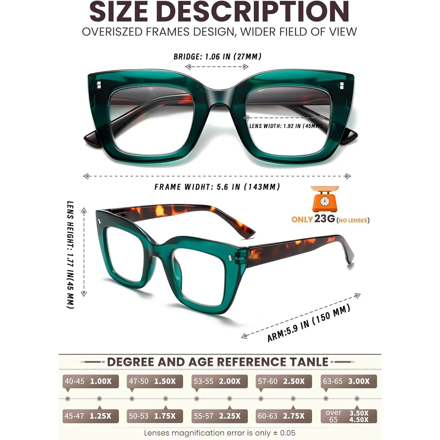 5. 3 Pack Oprah Style Reading Glasses Oversized Readers Blue Light Blocking Computer Eyewear With Spring Hinge