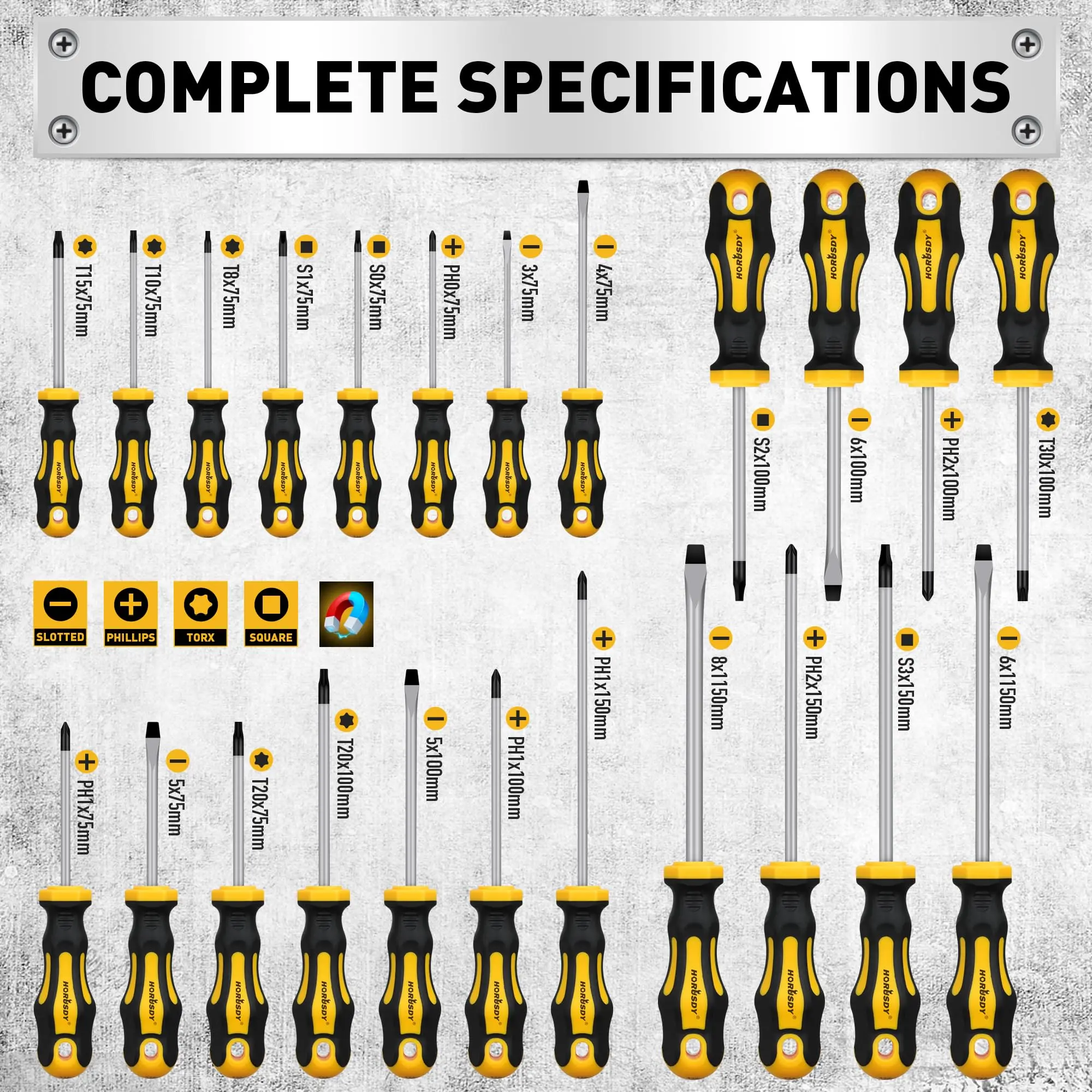 VERSATILE TOOL SET - Includes Phillips, flat head, and slotted screwdrivers, SAE and metric hex keys, precision tools, and more, making it a complete solution for diverse household and professional tasks.