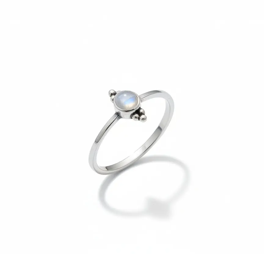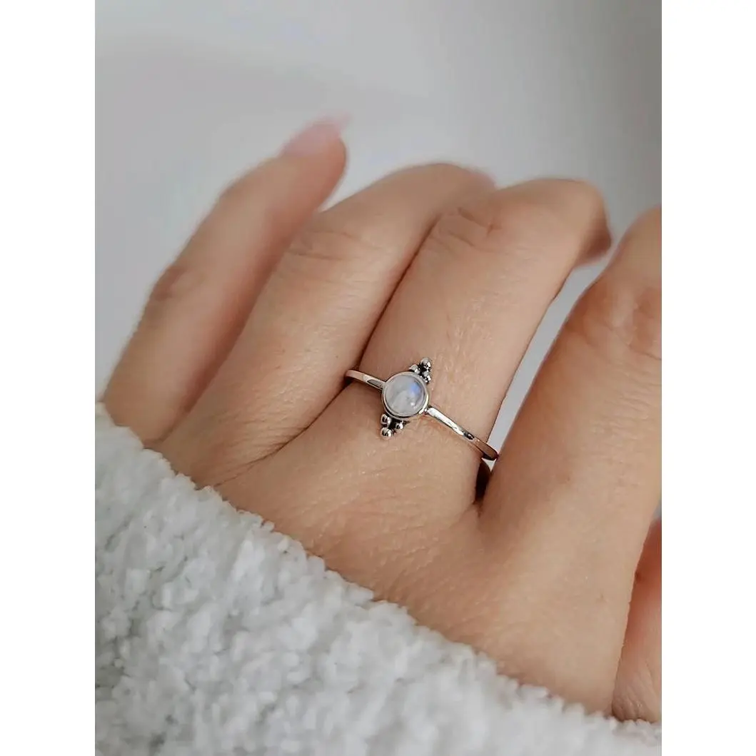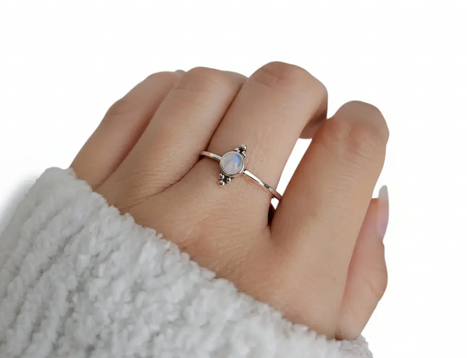 Sterling Silver Rainbow Moonstone Ring – 925 Stamped, Dainty Bohemian Moonstone Ring
