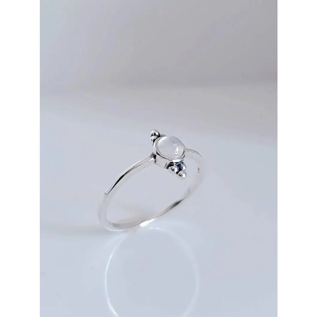 This dainty moonstone ring is a stunning symbol of tranquility and hope, making it a perfect gift for anyone seeking elegance and balance in their jewelry collection.