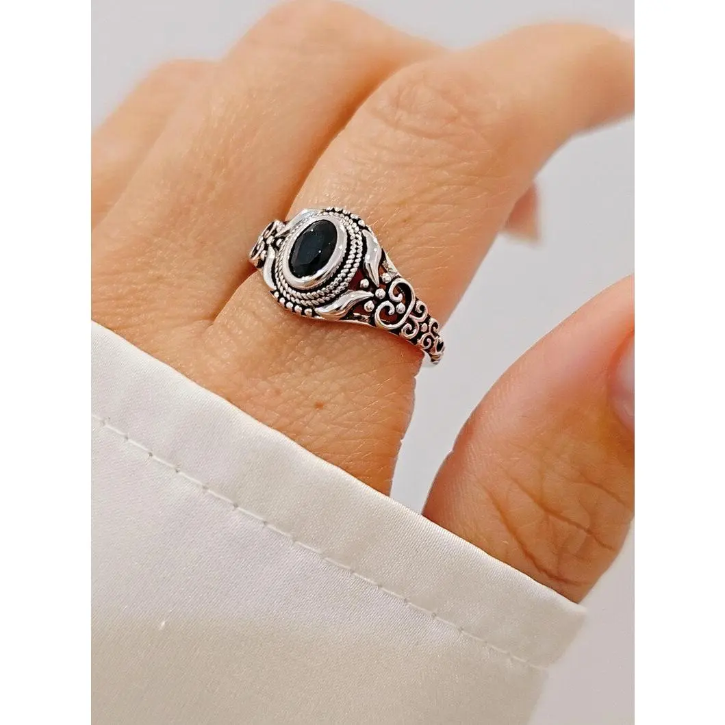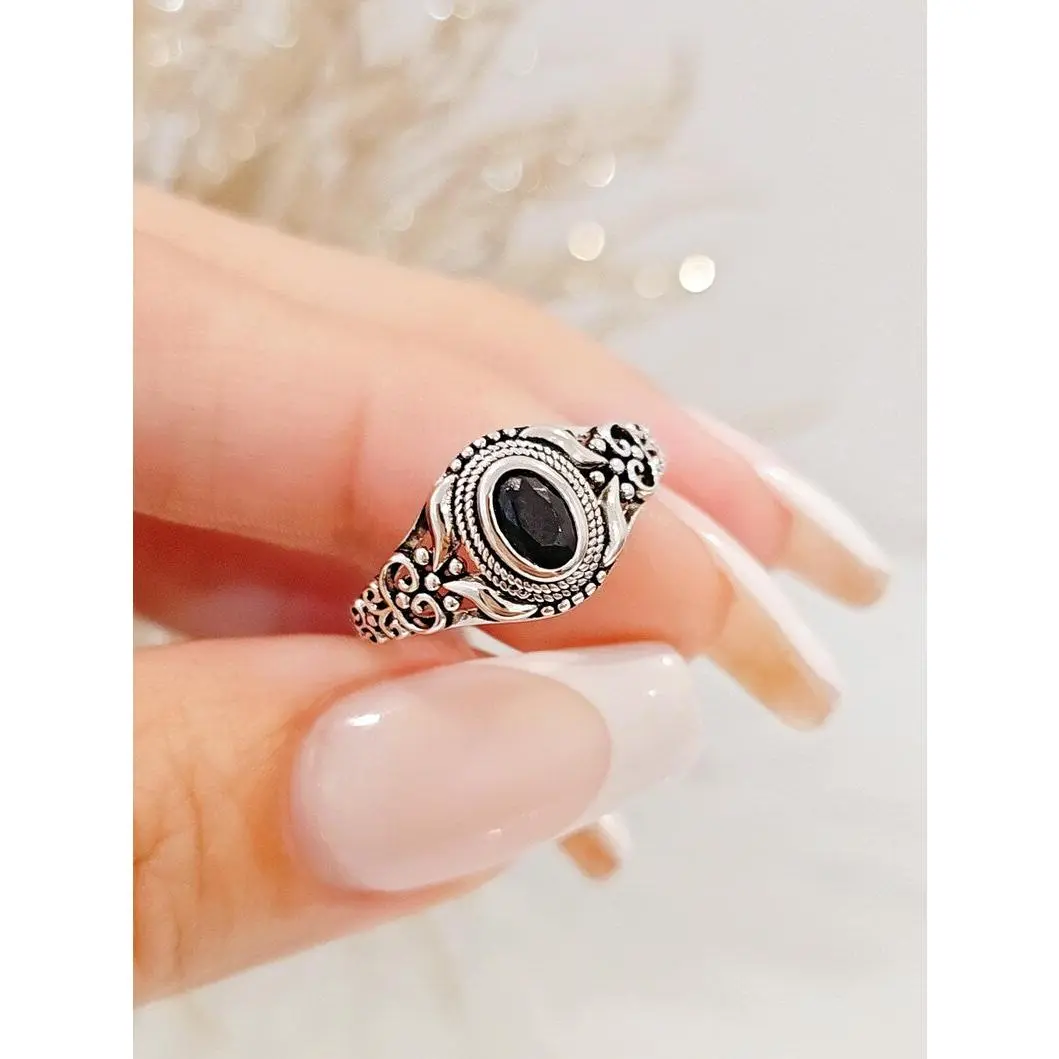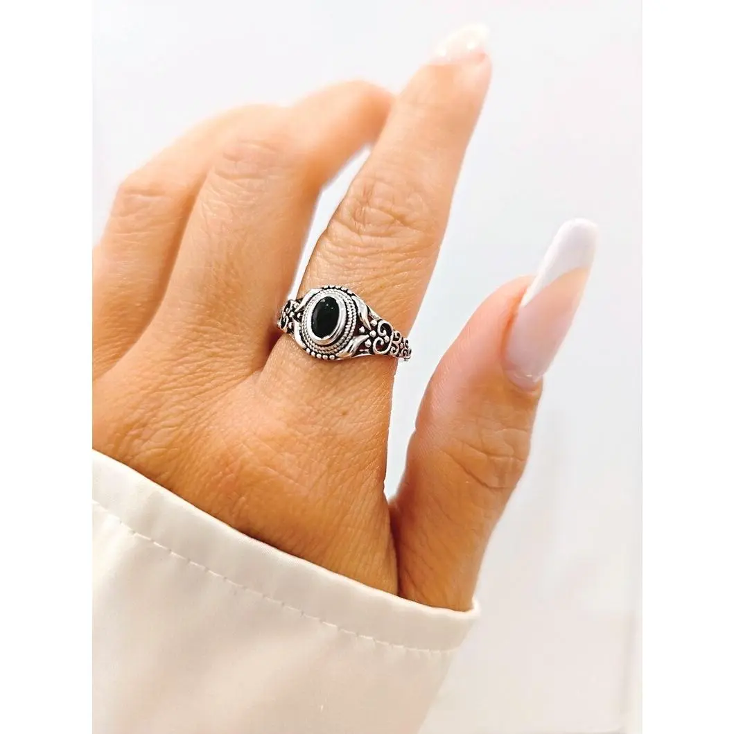 Sterling Silver Black Onyx Ring – Oval Cut Women's Promise Ring, Anniversary & Engagement Jewelry