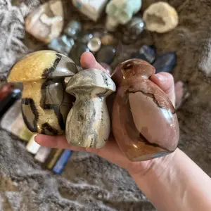 Looks even better in person! Great lowest beautiful crystals and banding! Moss agate again with Druzes heart! Gorgeous. Promptly put amongst my plants. The rest will be here today and I can NOT wait.