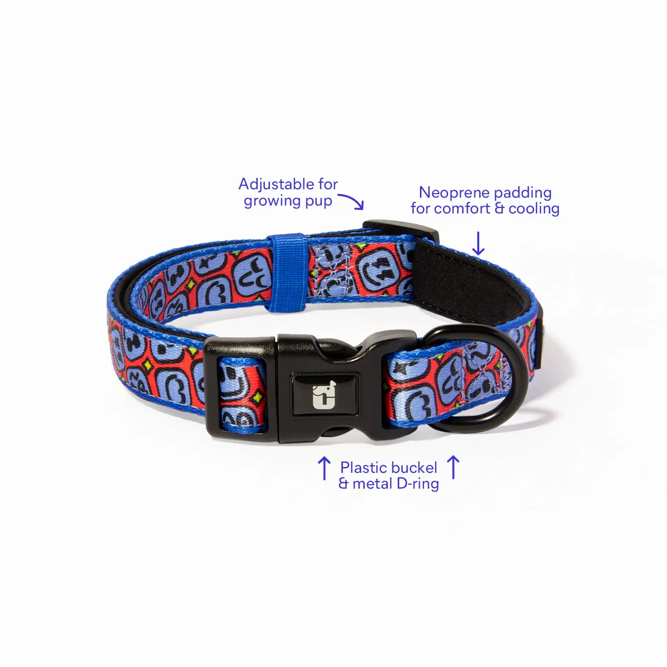 Designed in our Big Mood print with playful happy faces and expressive details throughout, this everyday dog collar lets your pup’s personality shine. Made with durable padded neoprene for added comfort, it’s designed for secure, comfortable, everyday wear, no matter what mood your dog is in.