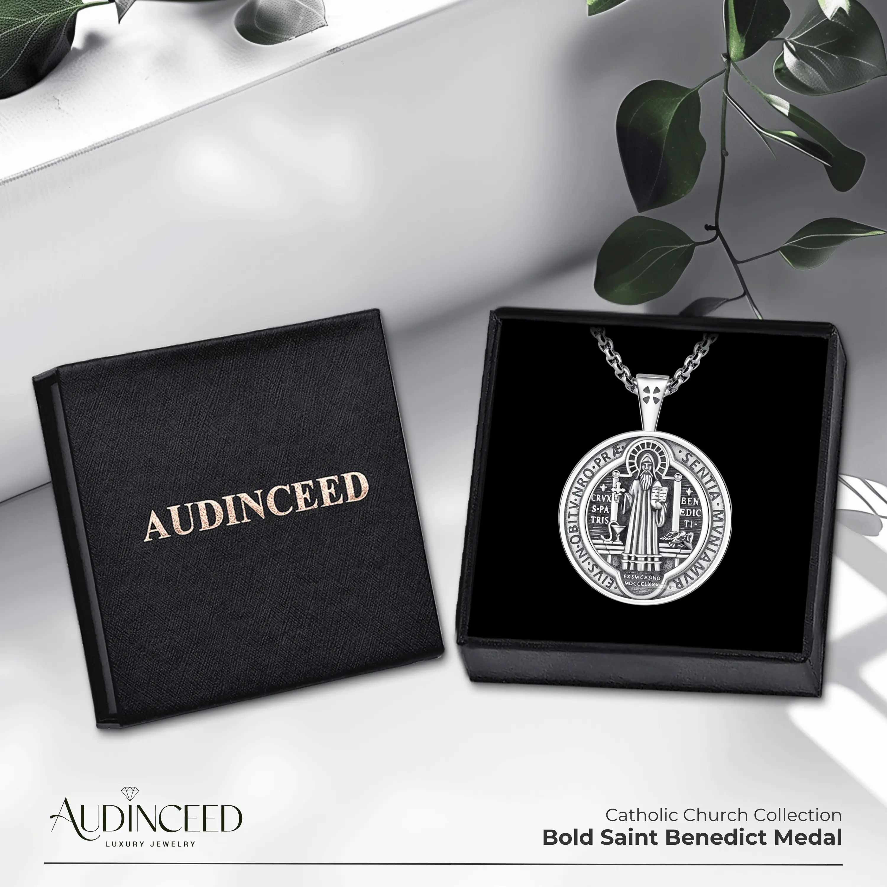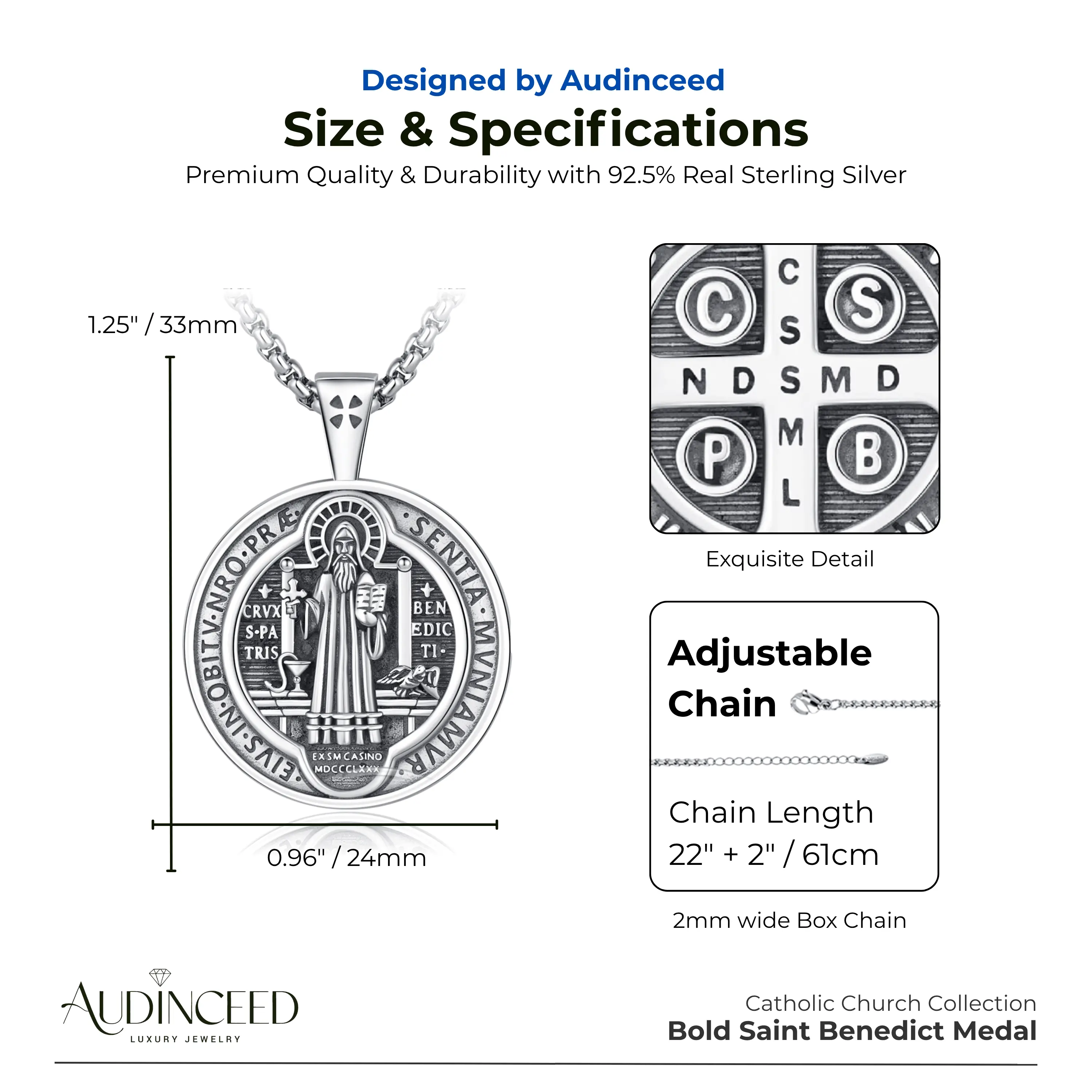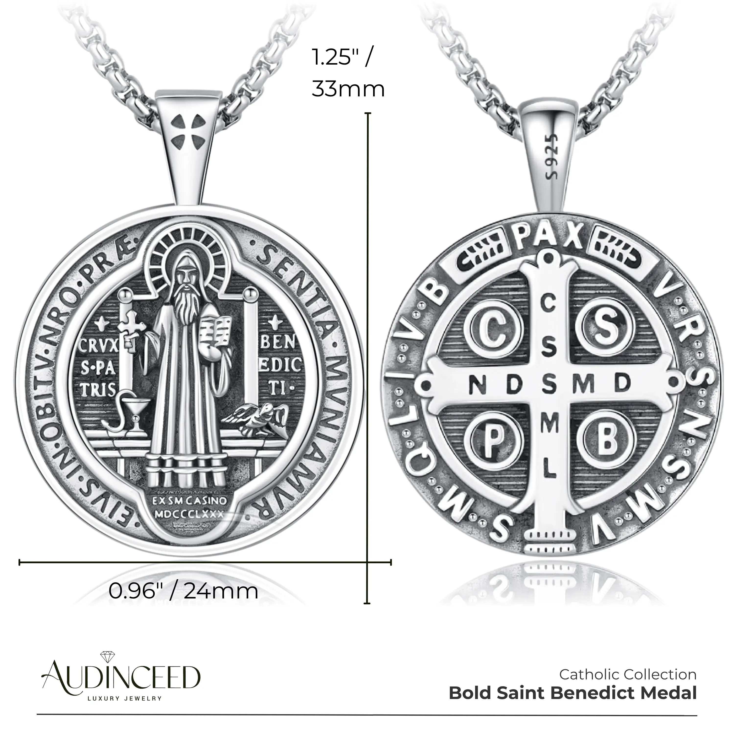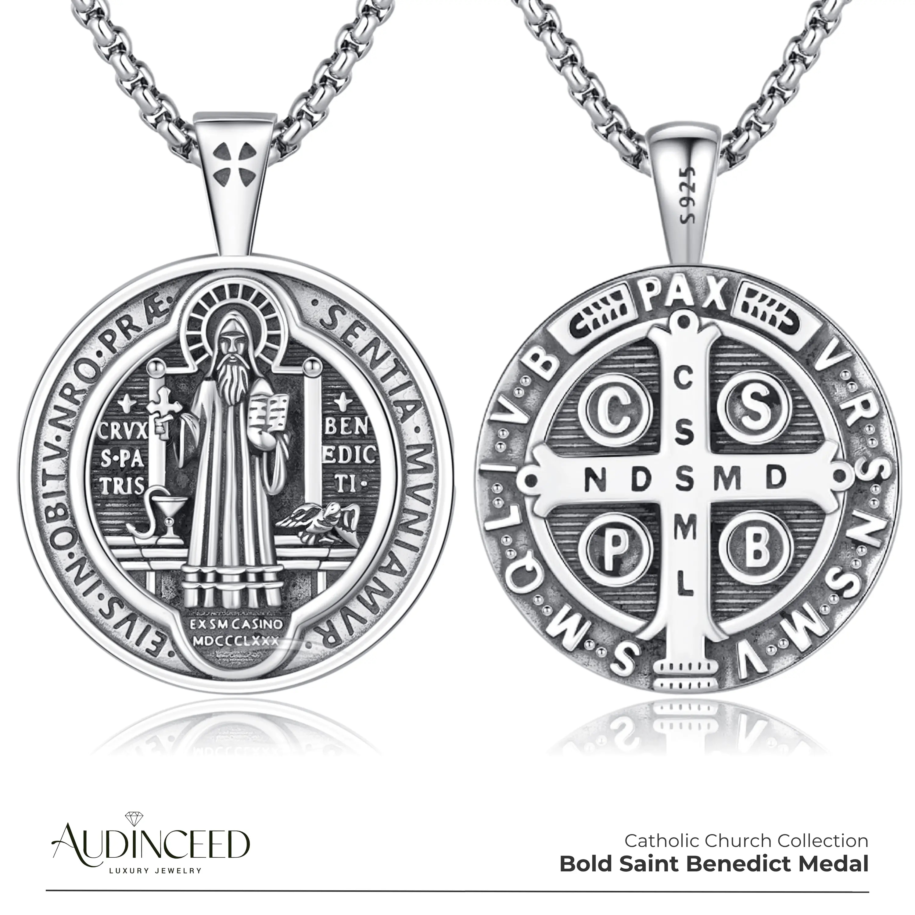 Audinceed St. Benedict Medal | Men’s Catholic Necklace | 925 Sterling Silver Pendant | Spiritual‑Protection Jewelry