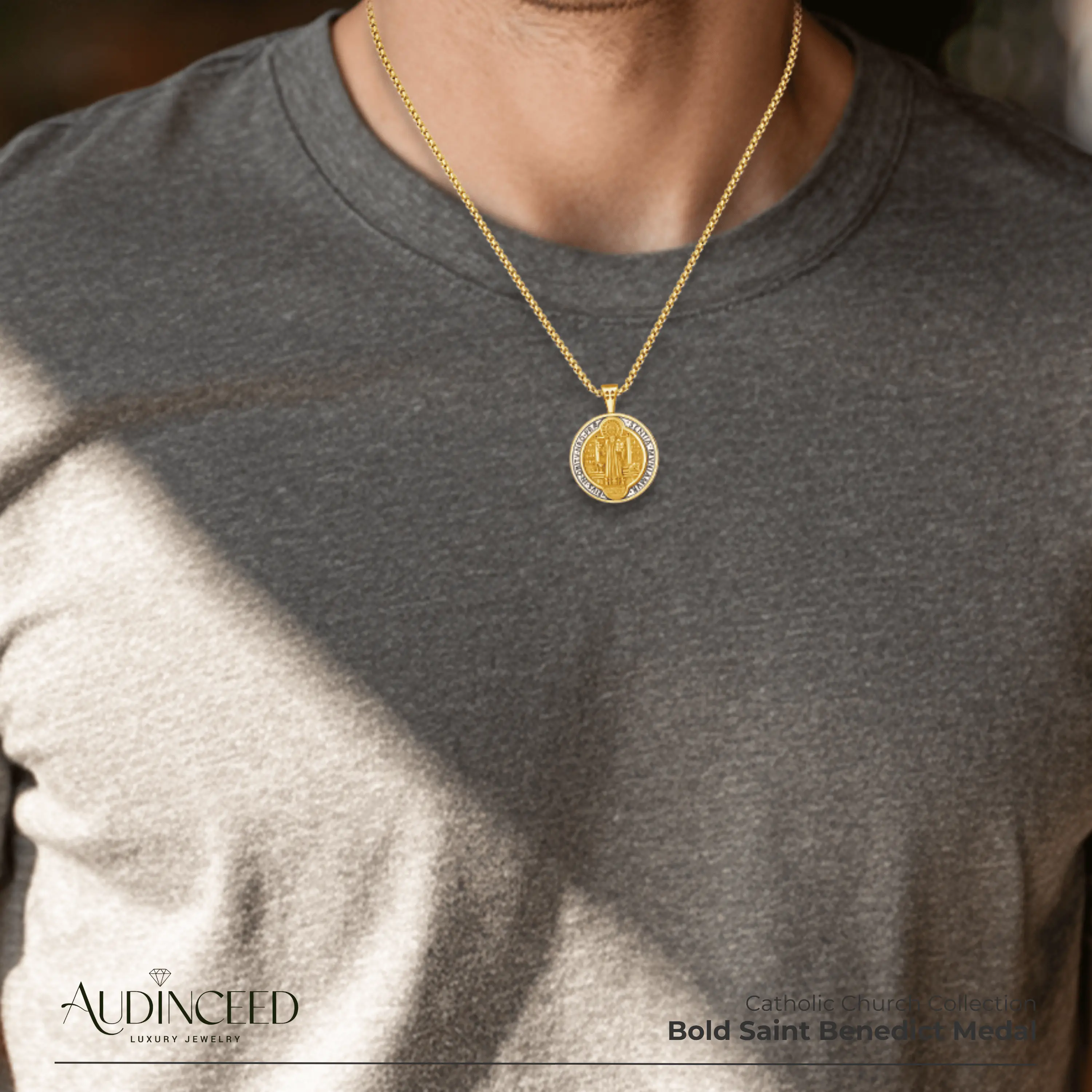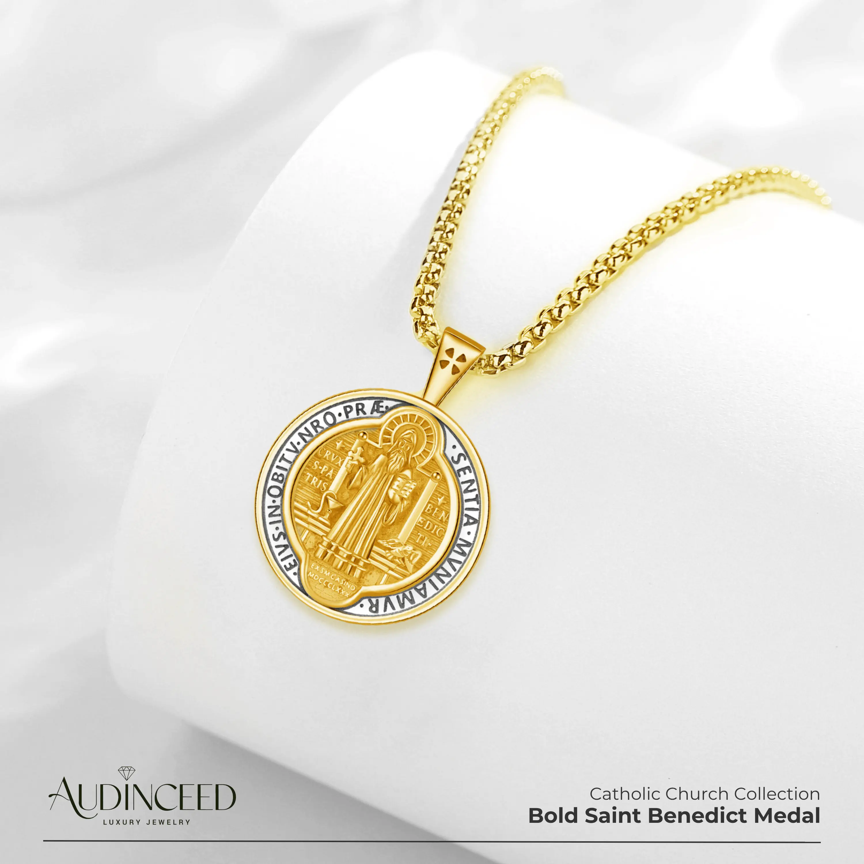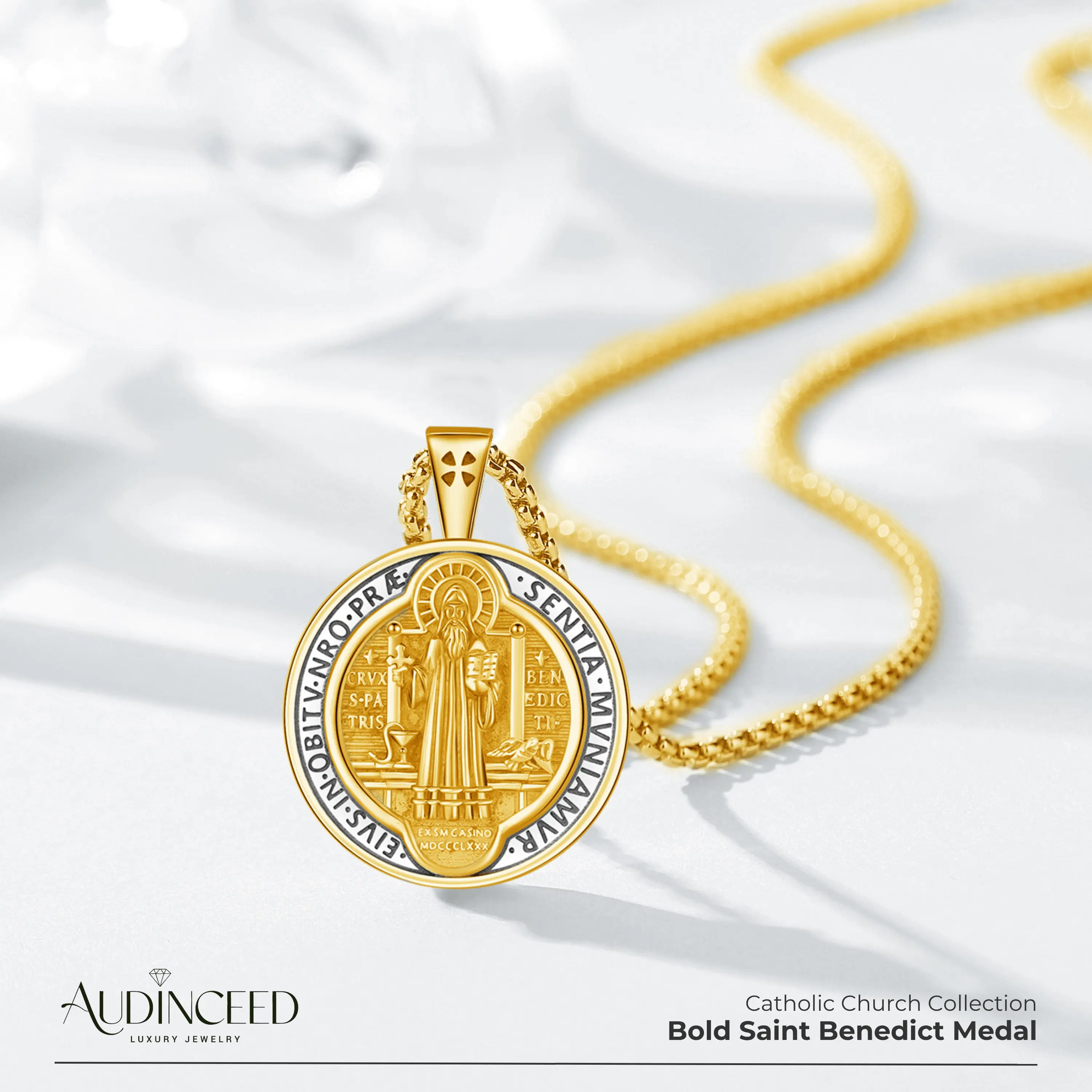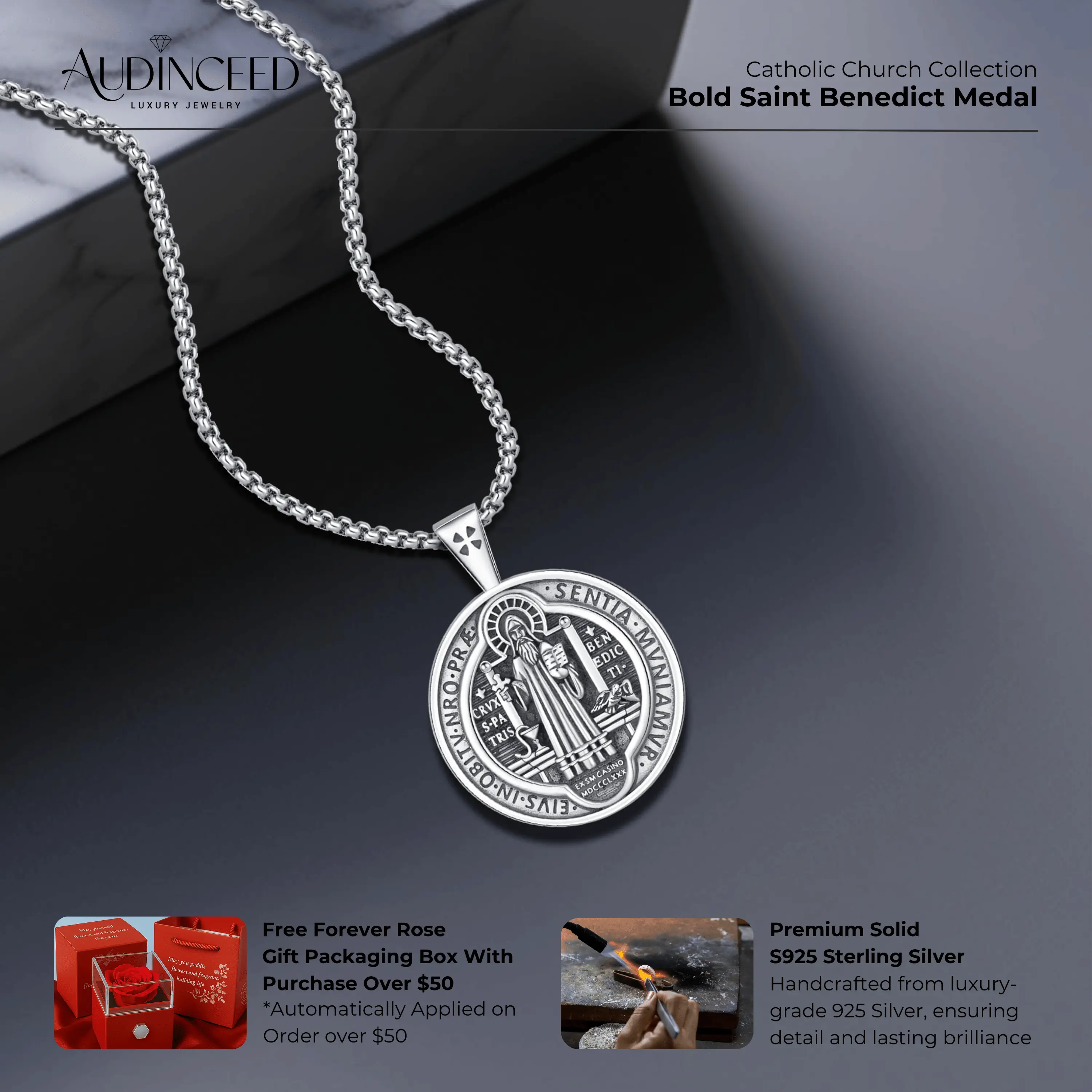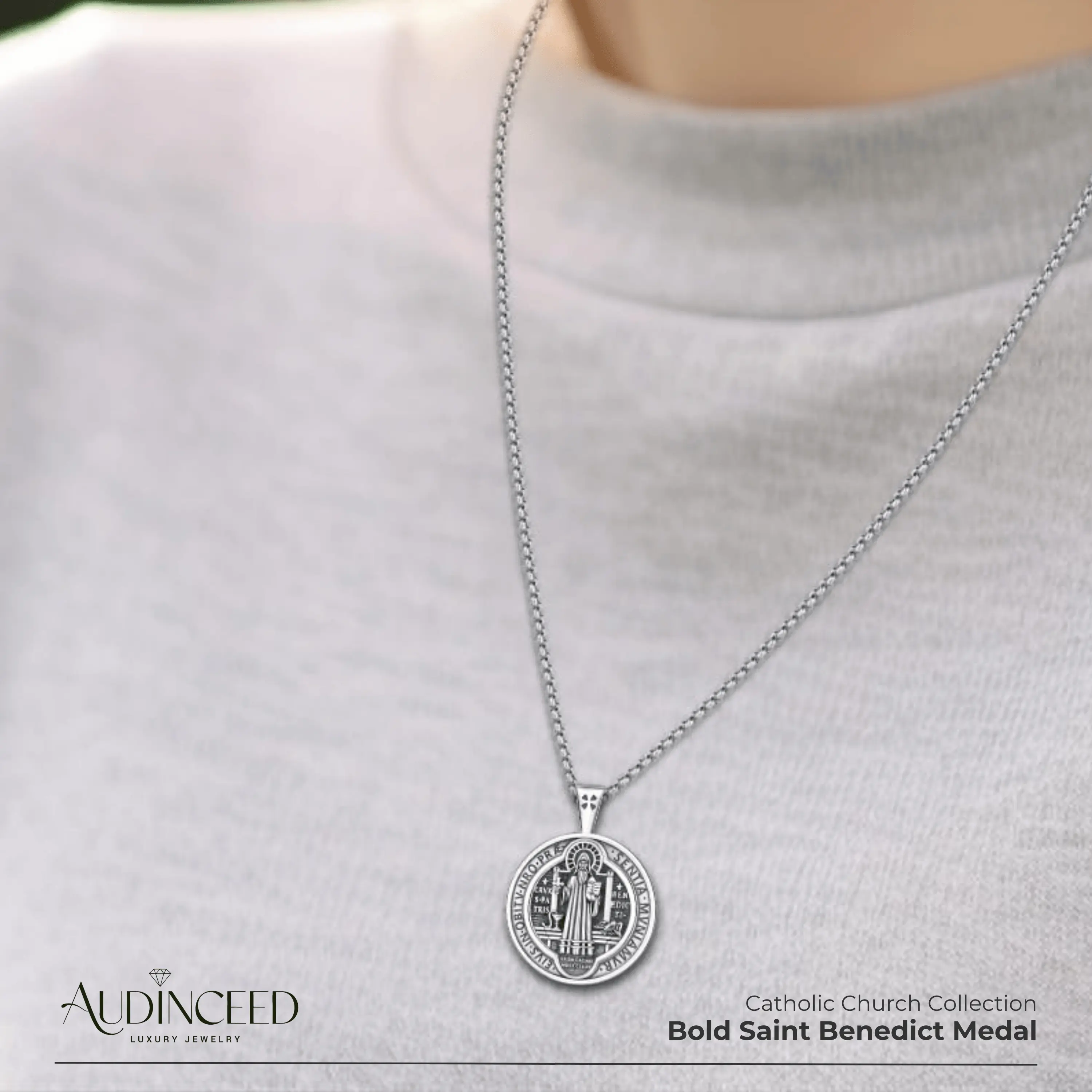 Audinceed St. Benedict Medal | Men’s Catholic Necklace | 925 Sterling Silver Pendant | Spiritual‑Protection Jewelry