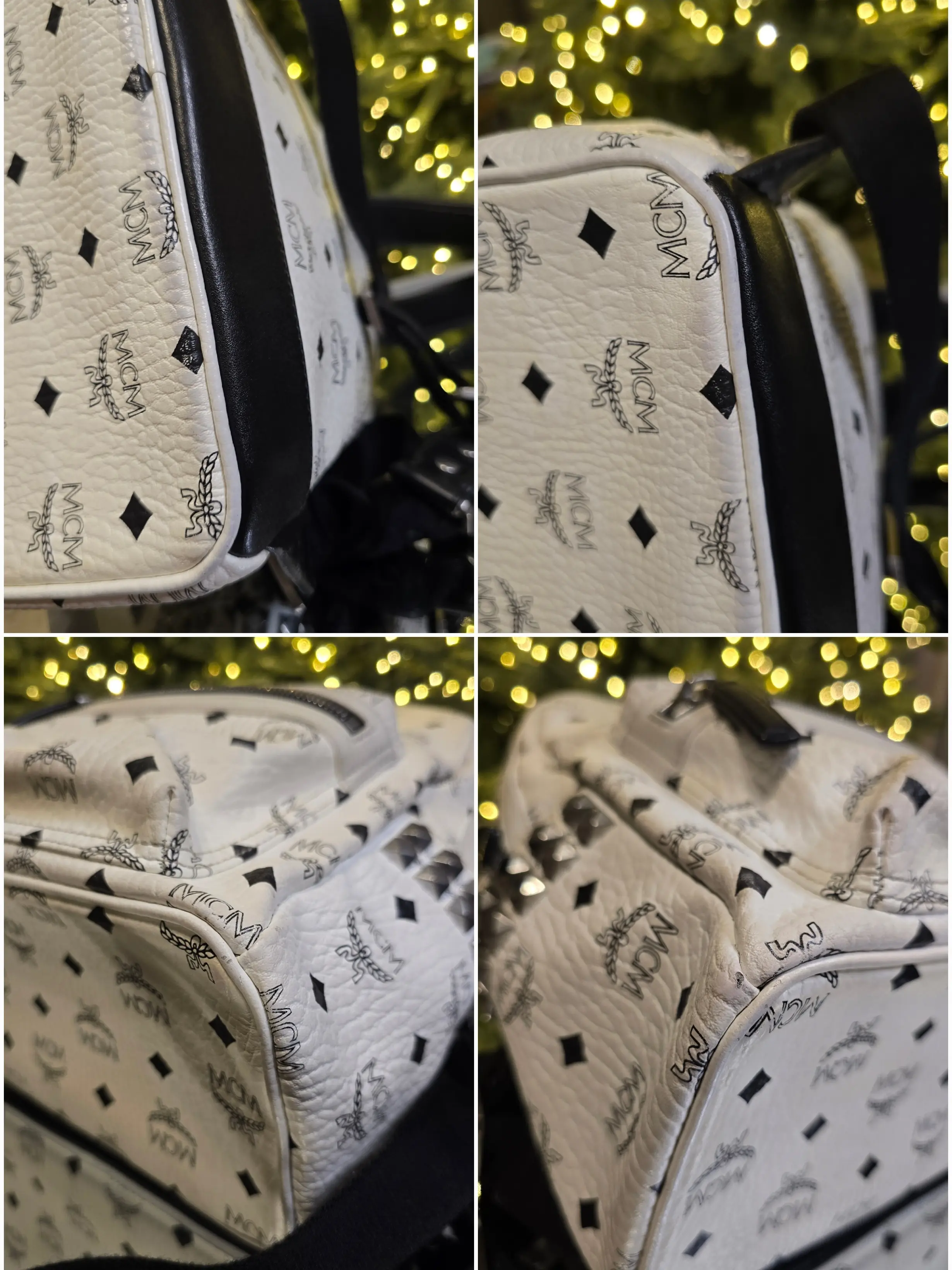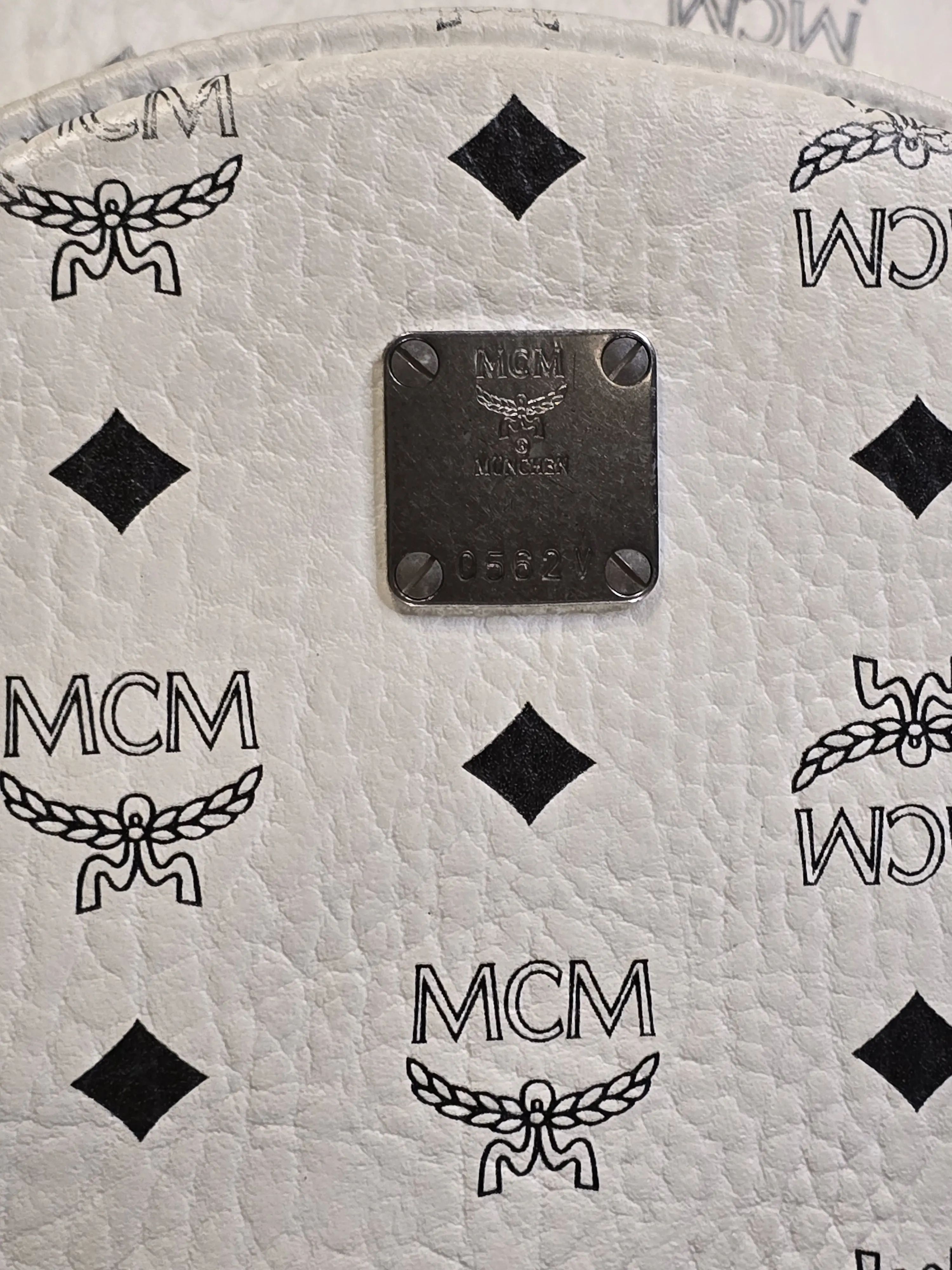 Discover the charm of the MCM White and Black Leather Small Backpack, a stylish accessory that combines functionality with a cute design.