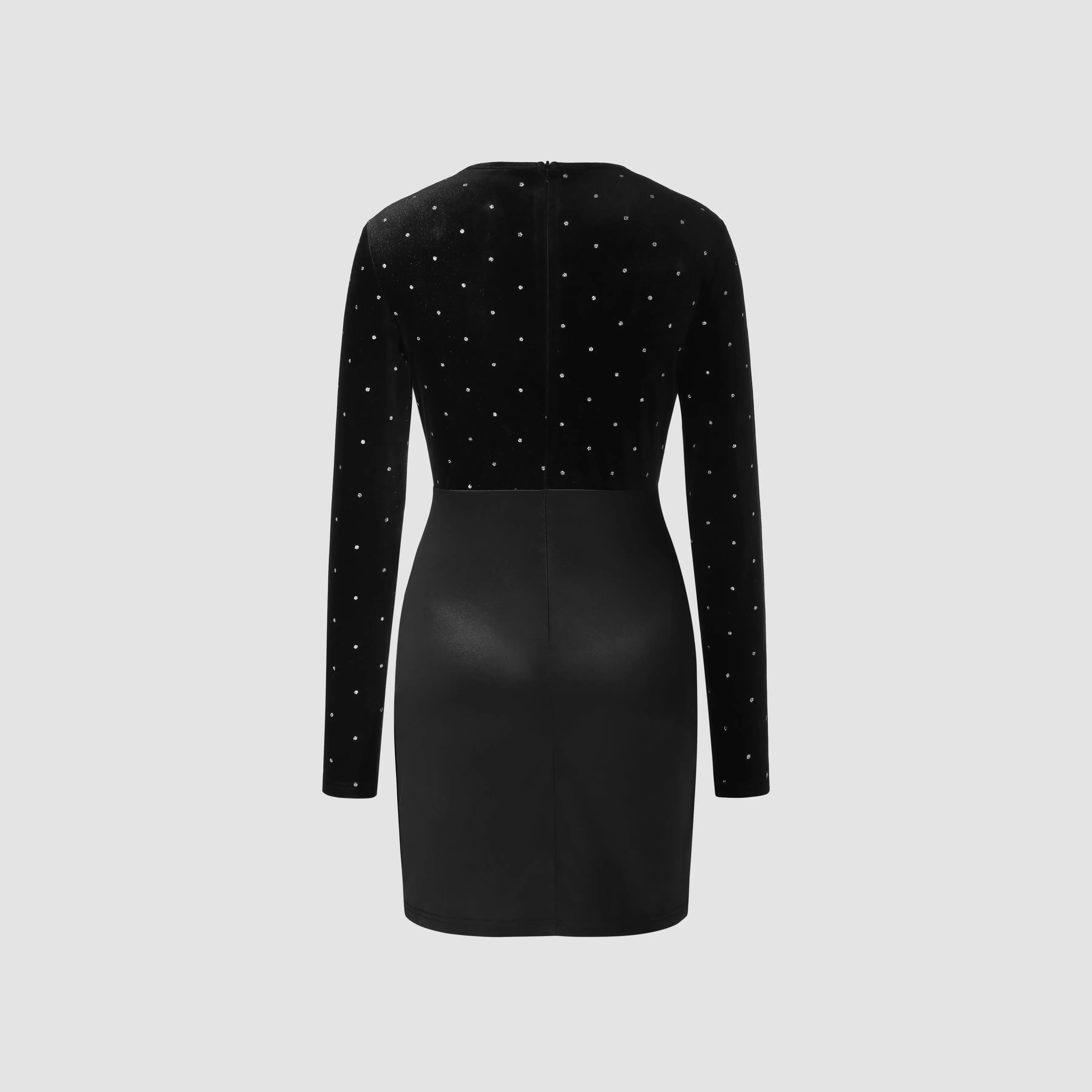 5. Cider [size 0-10] Velvet V-neck Solid Rhinestone Cut Out Mini Dress