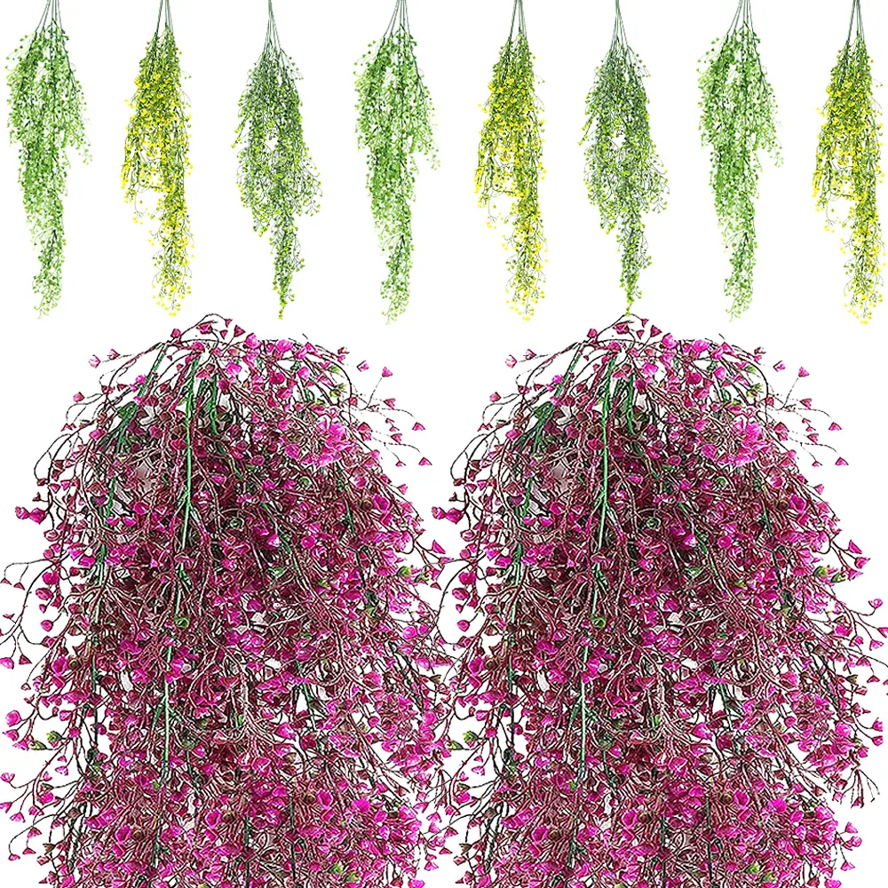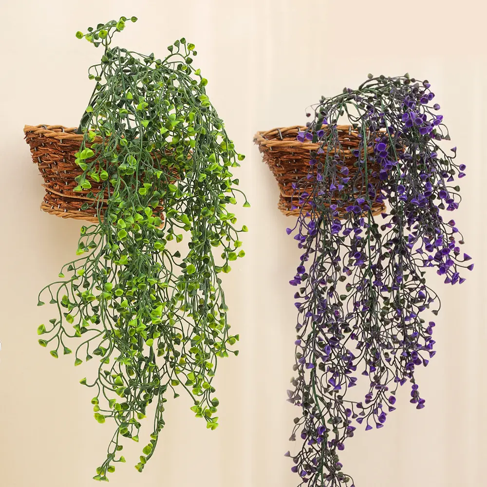 Simulated Orchid Vine Green Yellow Purple Fake Plant Wall Hanging Basket Flower Wedding Home Garden Decoration Aitificial Rattan Decorative Fruit