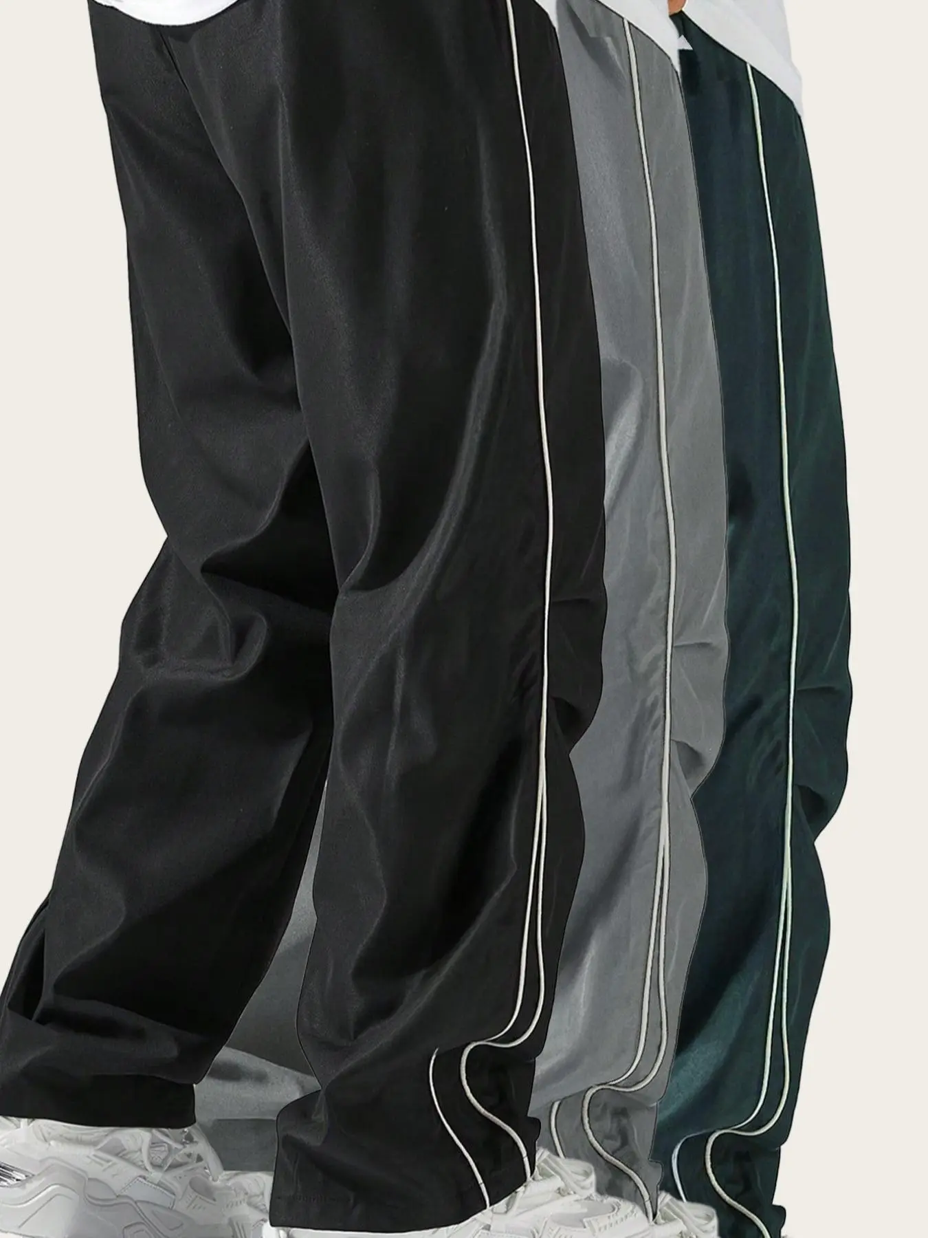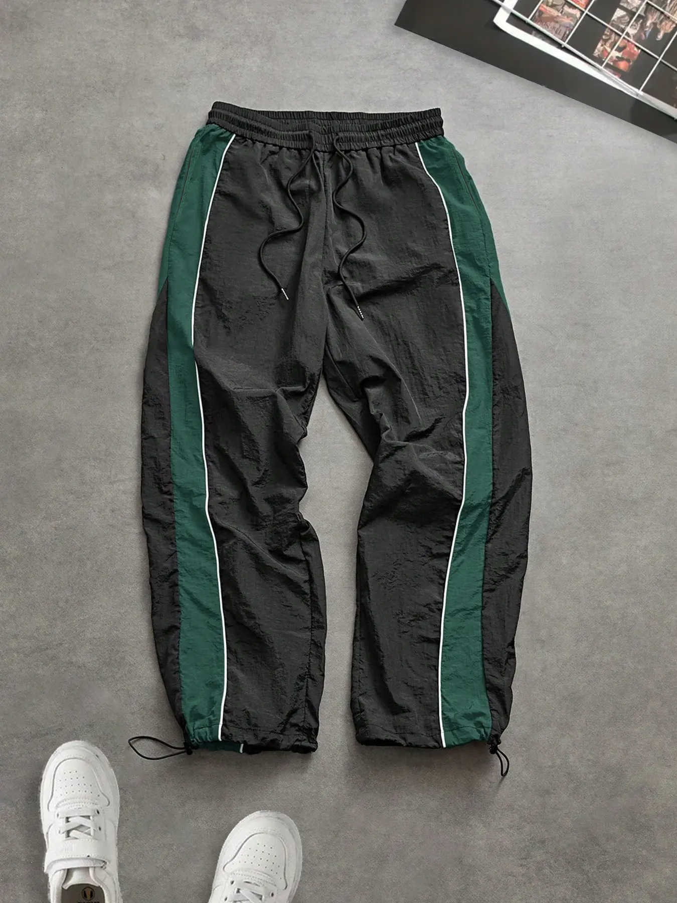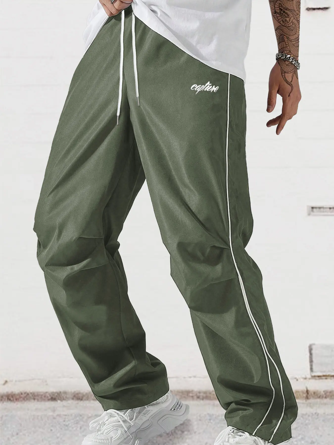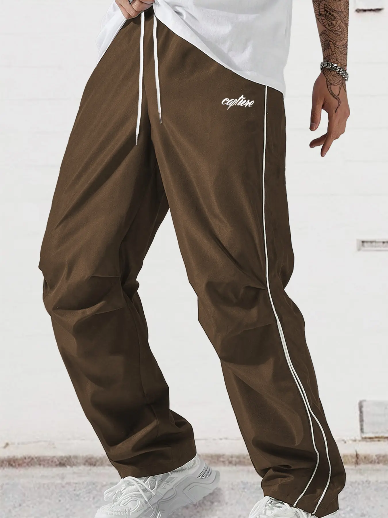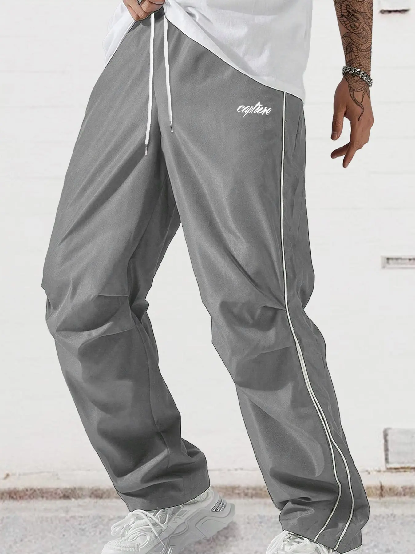 Men's Letter Print Drawstring Waist Athletic Pants, Casual Comfy Contrast Binding Pocket Straight Leg Trousers for Daily Wear, Unisex Workout Bottoms for All Seasons