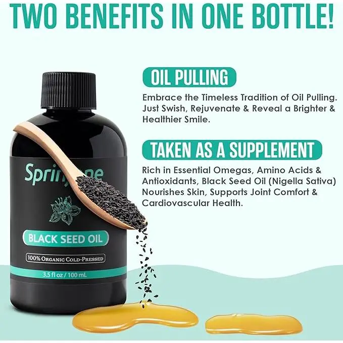 Experience the ultimate power in oral care with SprinJene Natural® black seed oil. Crafted exclusively from 100% cold-pressed, organic Black Seed Oil, this super antioxidant is your key to a revitalized smile and overall oral wellness.